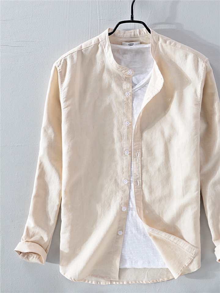 衬衫翻领,凸显干练气质。宽松衬衣版型,休闲随性。亚麻材质,穿着舒适透气。