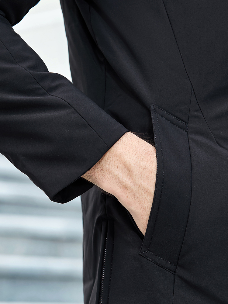 利落短款设计,尽显男士的品味。纯色而设计,个性百搭,彰显低调内敛的风格。