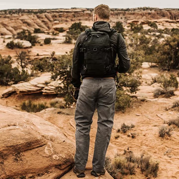 侦察者战术裤的斜插袋,袋角有贴片补强,方便插一些工具,斜插袋中有袋中袋设计。膝盖部位采用的是立体3D裁剪,符合人体运动规律,上身更精神而且运动起来更舒适。
