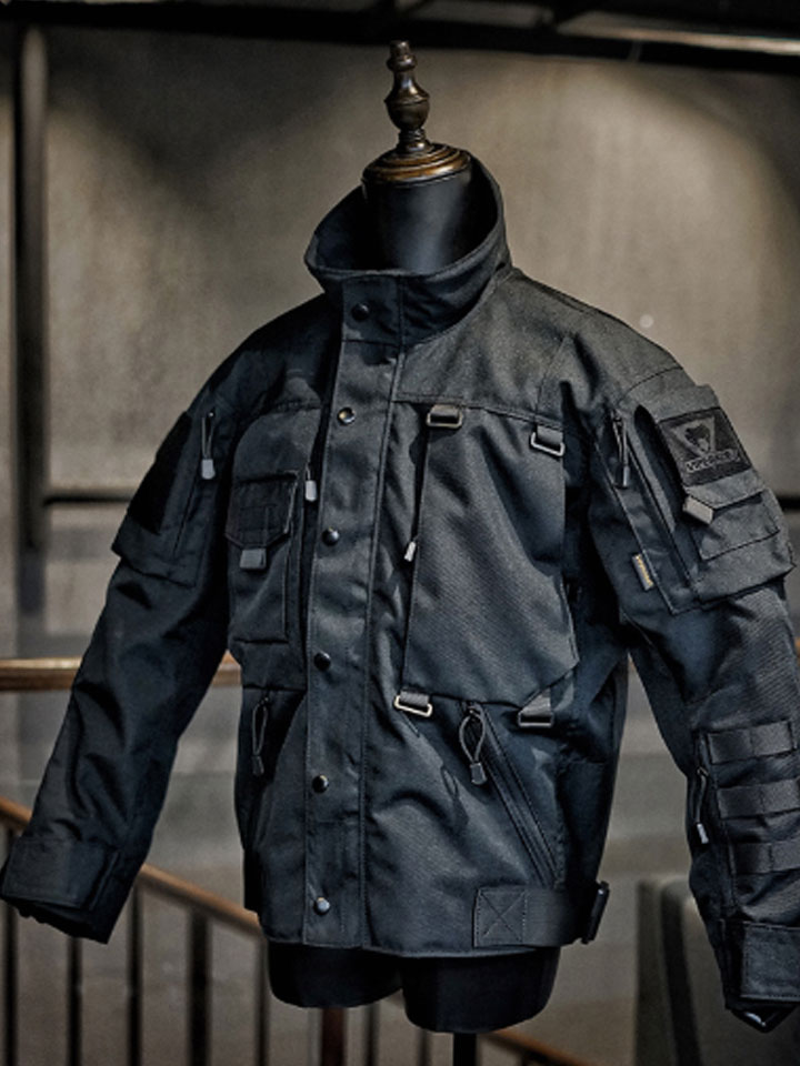 外套采用多口袋的设计,可以方便携带小物件,面料具有防泼水、透气的特性,材质紧实耐磨,弹性拉伸构造,让你在运动中更加舒适自在。