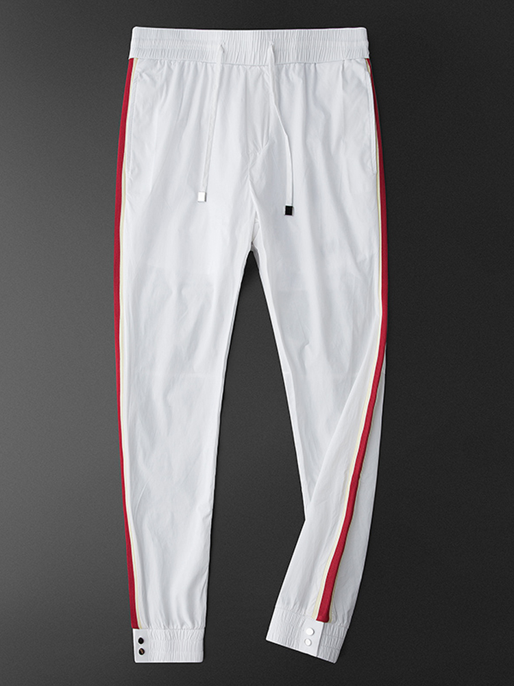 此款男士小脚裤选用优质锦氨混纺面料制作,防风吸湿,穿着舒适。涂层拉链束脚口的设计别出心裁,可自由调节裤脚松紧,裤腰选用抽绳设计,穿着简约大方。