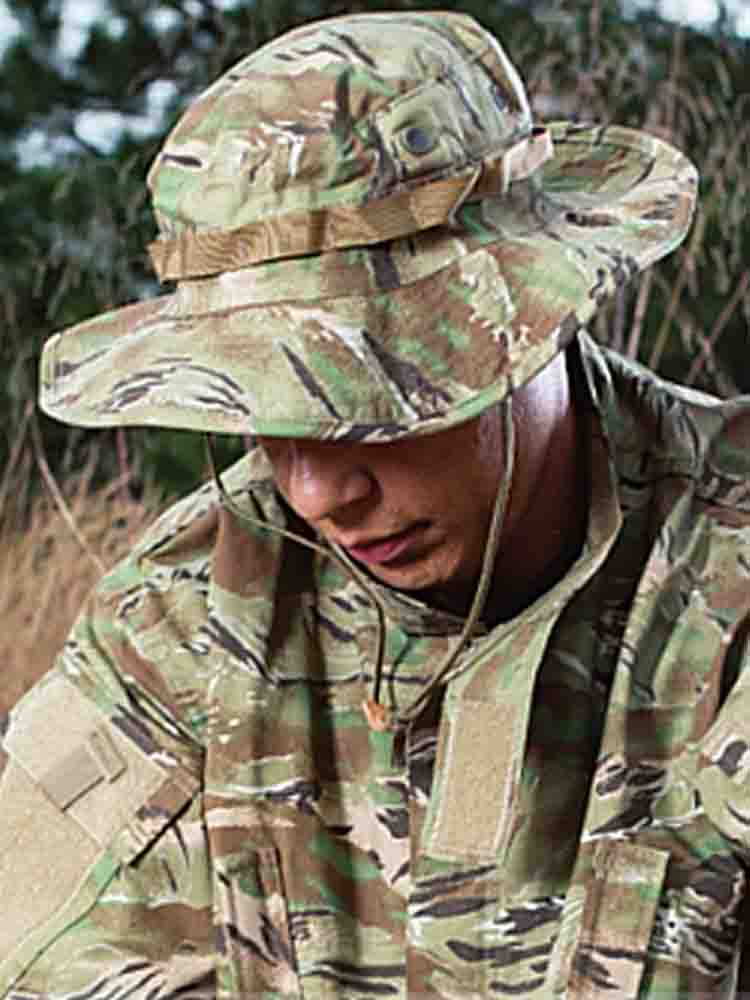 采用1050D尼龙加珍珠棉和弹力透气网三部分组成,耐磨性强而且防水。棉质内衬吸汗吸湿性能佳,吸汗速干,适合运动使用。帽身添加的迷彩印花,尽显战术气质。帽绳采用尼龙材质打造,可以随意进行调节。