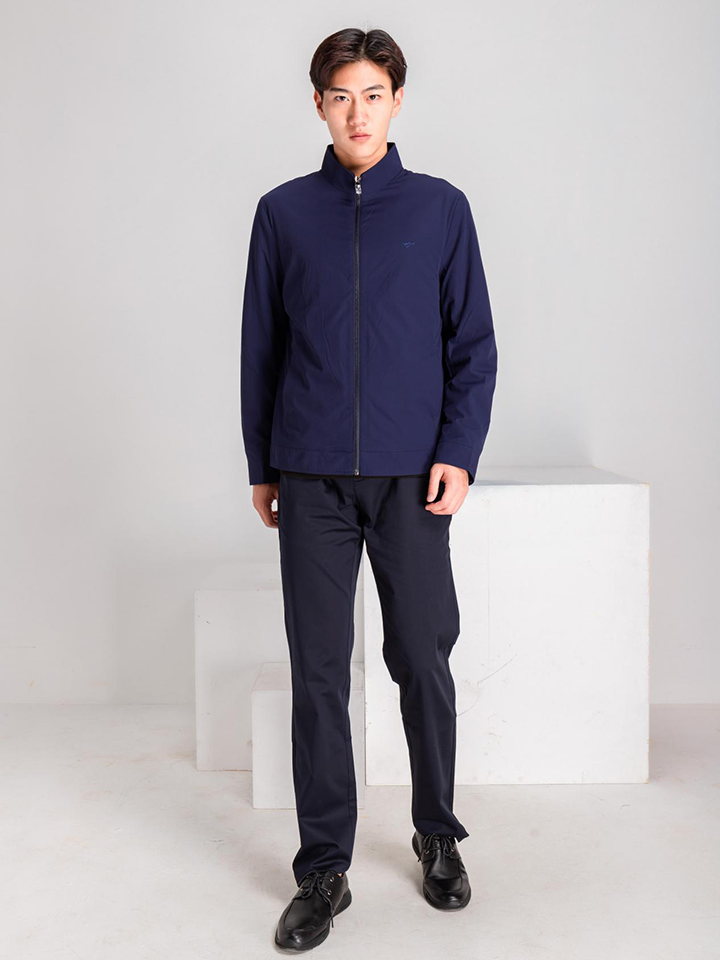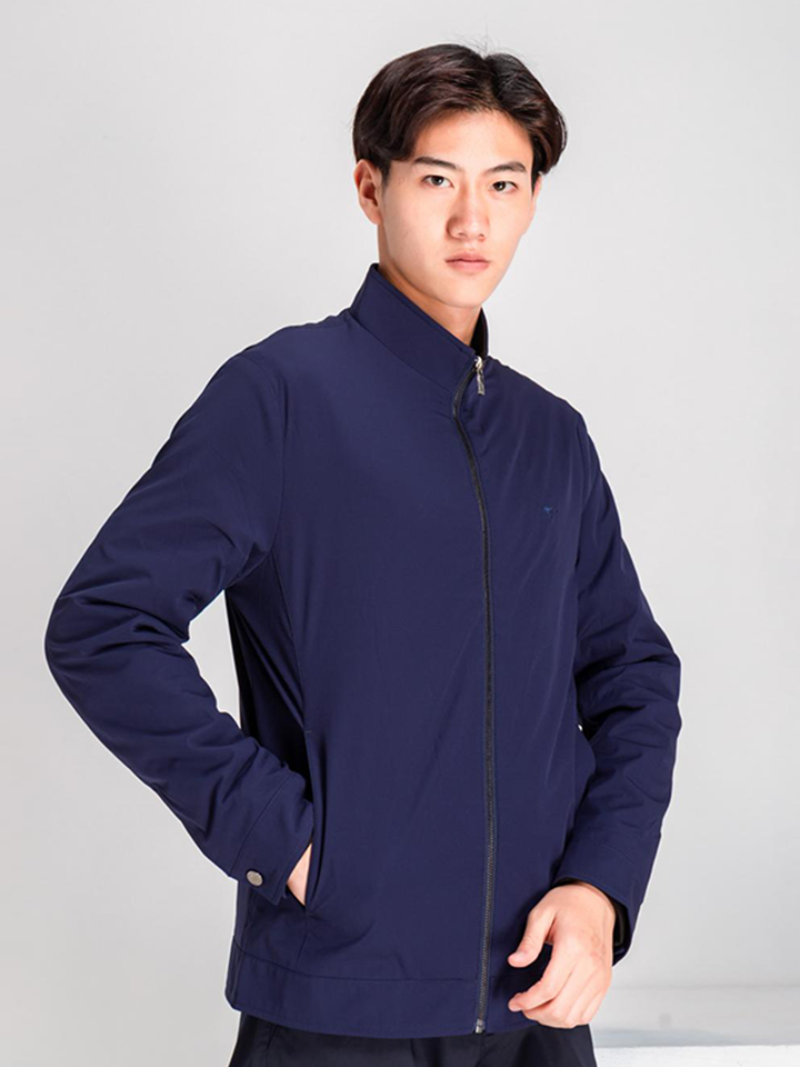 夹克面料为混纺材质,具有一定的防风保暖效果。平整垂顺不易褶皱,非常有质感。四面弹的质地具有很好的延展性,日常运动时减少束缚感。受到外界的拉扯力后,还能迅速恢复原状,长久穿着也不易变形走样。