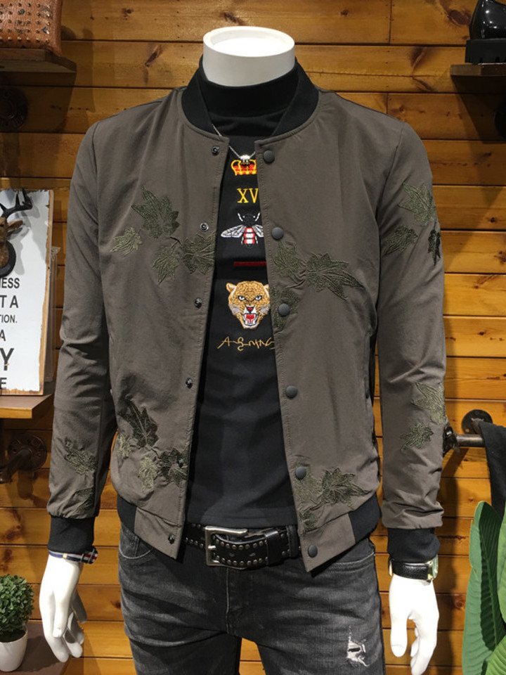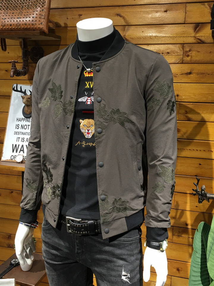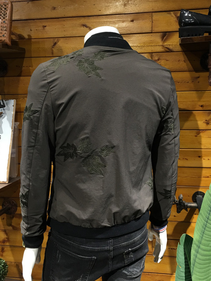 一款个性十足的夹克,经典挺括的立领衬托男士俊朗的面庞,刺绣的设计,视觉上的点睛之笔,突破了纯色的单调,却又不花俏复杂,轻松打造休闲风格。