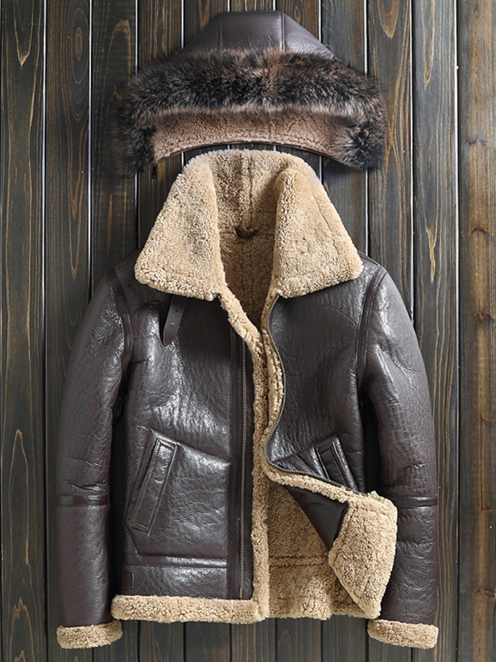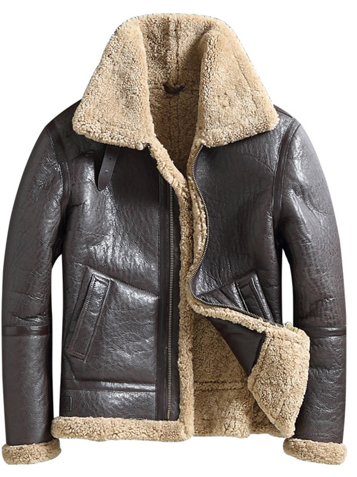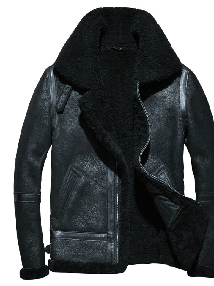 来自爵盟的这款皮衣,采用羊皮毛一体面料,具有出众的防风保暖效果,翻毛领的设计,焕发硬朗霸气的男人气场。结合短款版型剪裁,修饰身材轮廓,更显阳刚挺拔。
