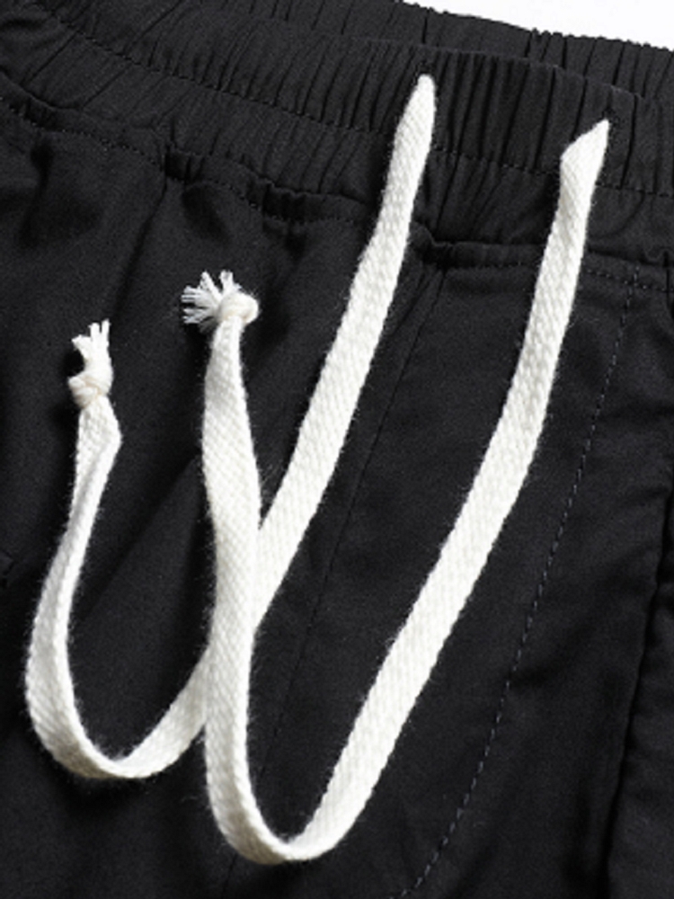 暗黑色调,打造酷炫风格。裤脚设计,彰显男士魅力。裤腰抽绳设计,方便穿脱。直筒裤型,穿着舒适自在。水洗做旧设计,个性十足。