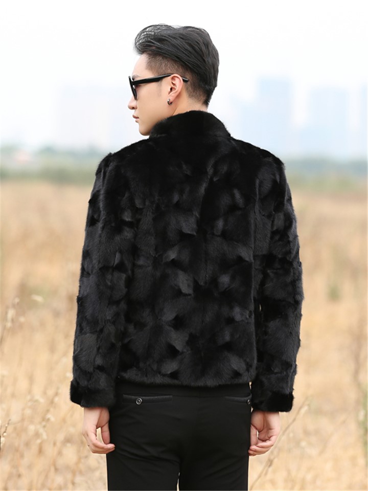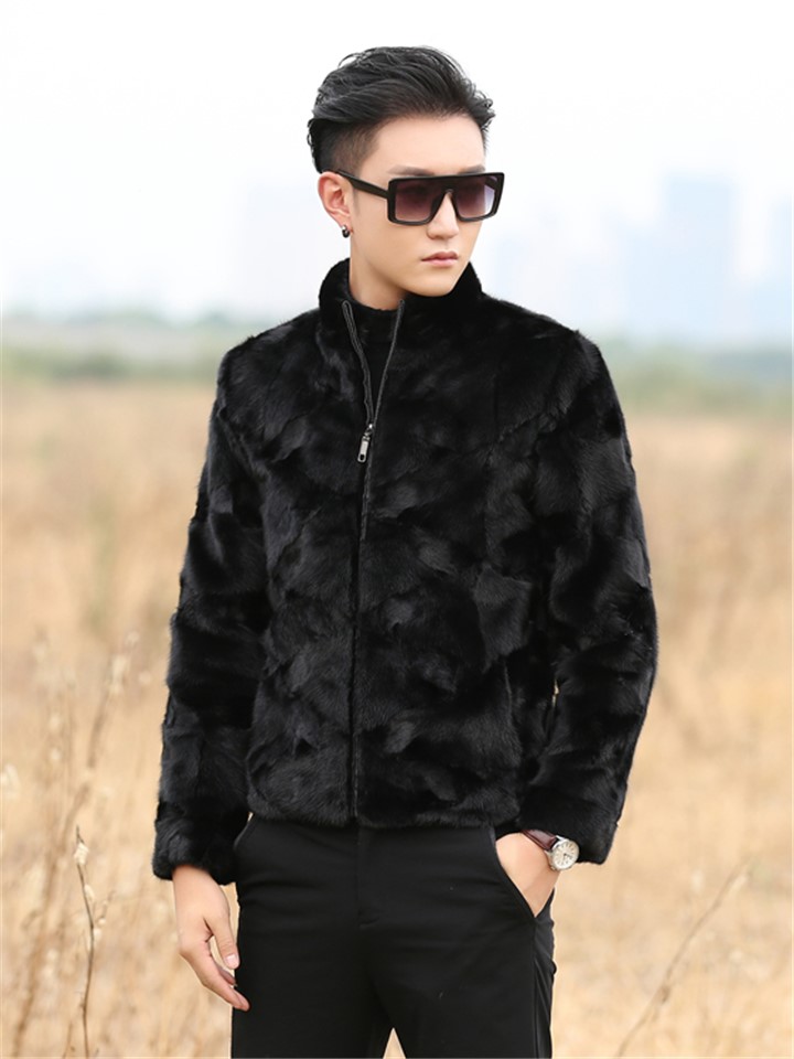西装领,彰显男士绅士范,水貂毛领,尽显奢华大气,皮草外套,尽显奢华大气,一体成型,穿着更加舒适,皮毛一体设计,保暖舒适,皮草大衣,穿着舒适保暖。