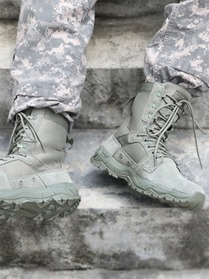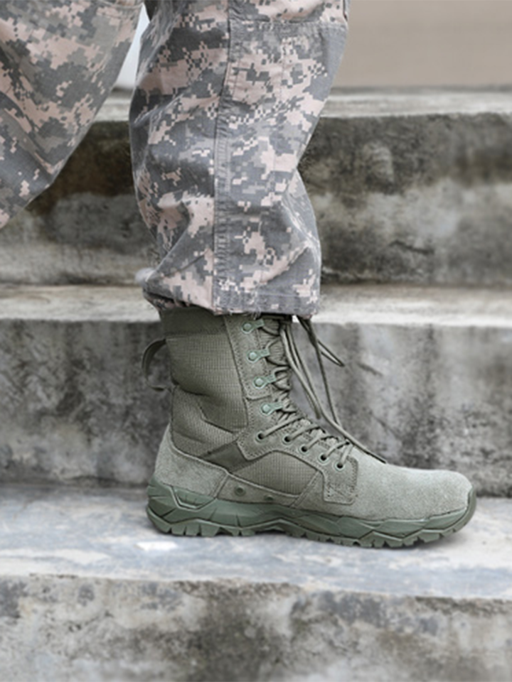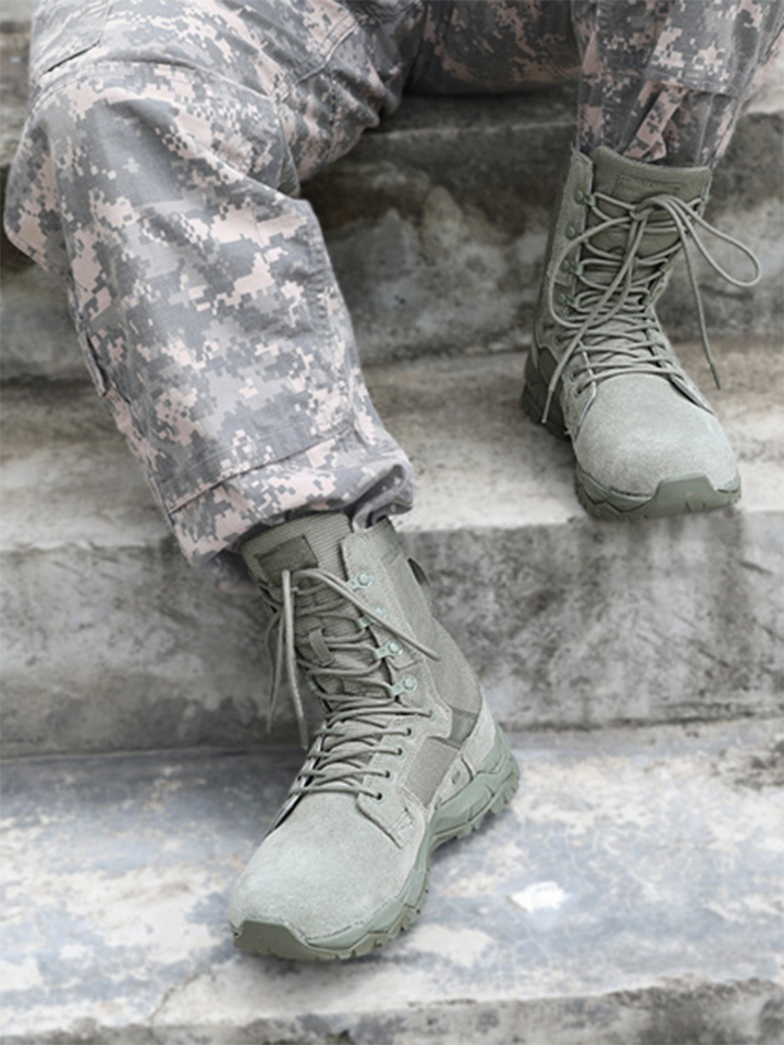这款战术靴采用绒面牛皮革和尼龙鞋面并配有透气网眼衬里,鞋身内侧透气孔设计增强了它的透气性,能保持鞋内干燥,抗菌防臭鞋垫,还能有效阻断细菌滋生。