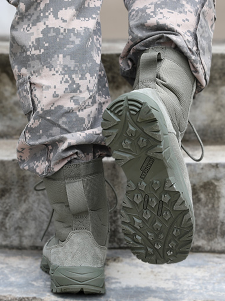 户外登山的时候穿一双耐磨防滑的鞋子运动会非常省力,这款超轻的战术靴就很不错,它的重量轻,穿着轻便舒适,透气性也好,能时刻保持鞋内干爽。