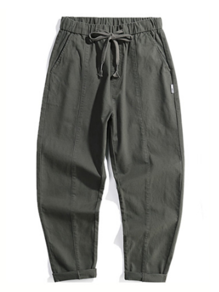 在松紧腰的腰头上拼接灵活的抽绳,美观又实用。还有百搭流行的纯色加持,别具简约亲和力。