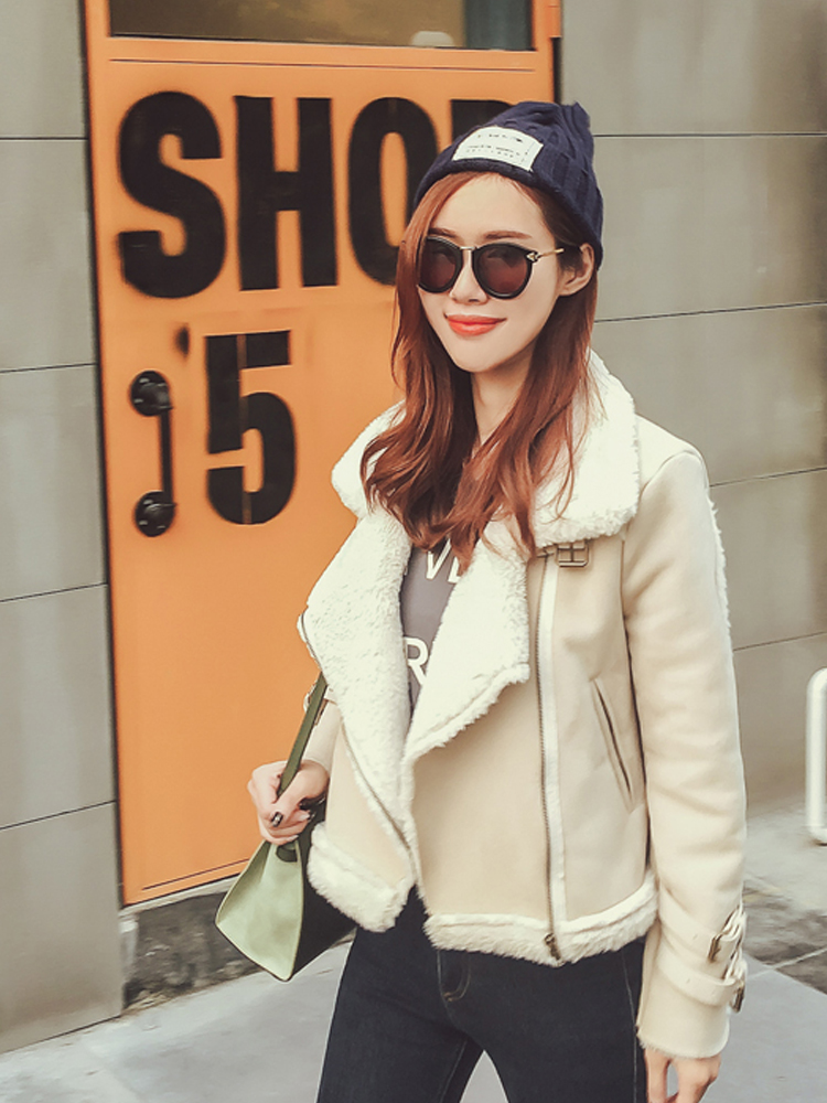 帅气迷人的羊羔毛外套,颜色比较淡雅,可以搭配深色系的修身牛仔裤,既有青春活力气息,又显的很是帅气,脚上无需费心挑选,一双小白鞋就可以了,很时髦。