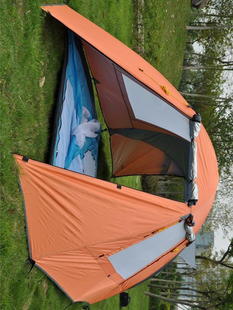 而且外账还具有独立使用的功能,摘下内账杆挂上挂钩就是凉棚了,夏天就可以这样遮阳用,真正的多用途。冬天防大风、防暴雨、防高寒!