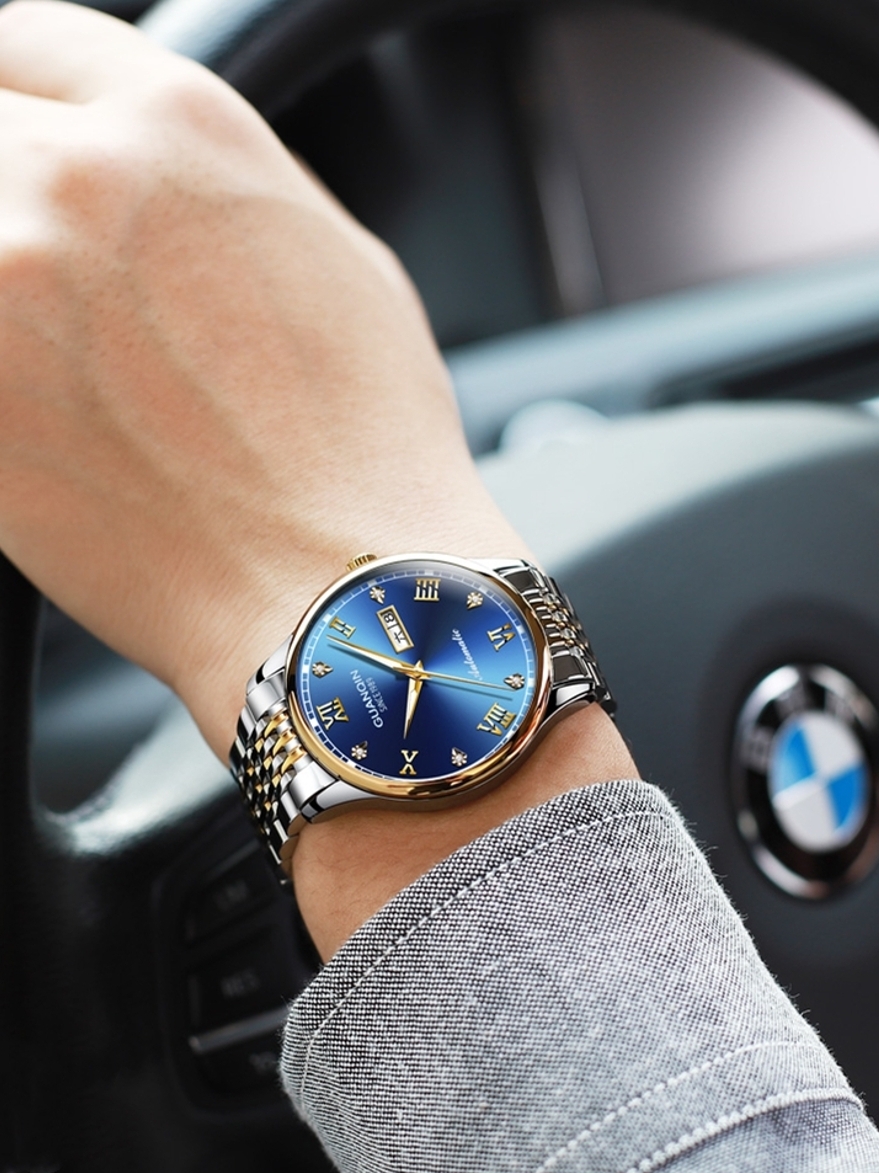 打造黑白经典表盘,表镜采用蓝宝石镜面,耐磨防刮,组合全自动机械机芯,走时精准,适合日常生活或商务场合佩戴,传递现代化的时尚理念。