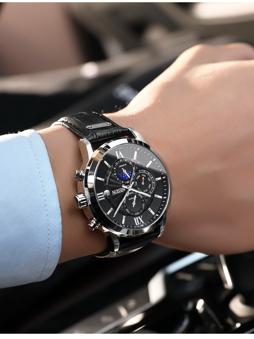 这款机械男表它采用自动机械机芯,打磨纹理细腻有序,走时准确而稳定,而且还有精钢打造的表带,搭配炭纤维设计,经过层层的抛光打磨使质感十足。