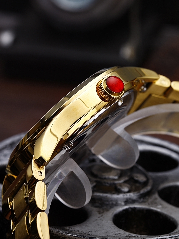 加之旋入式底盖的使用,整体密封性能优异,防尘防水;且不锈钢表链质感十足!