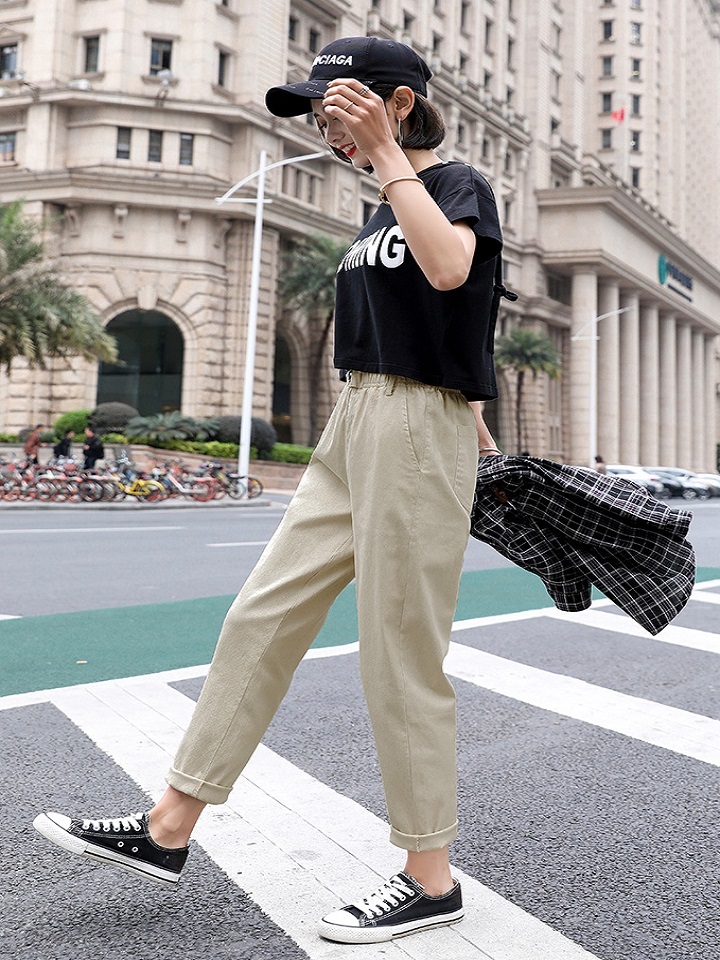 这款哈伦萝卜裤甄选质感上乘的棉,氨纶混纺面料制成,触感温润柔软,亲肤性佳,具有良好的吸汗透气效果,而且面料的弹性非常好,穿着随性舒适。