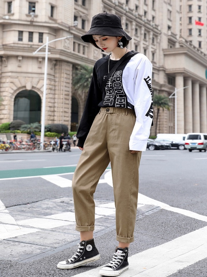 这款哈伦萝卜裤,自带一种潮酷的帅气感,搭配假两件的卫衣,就是一种阳光帅气的姿态,踩上网红的老爹鞋,让你走在潮流的前沿,出门背上双肩包,轻松解放你的双手。