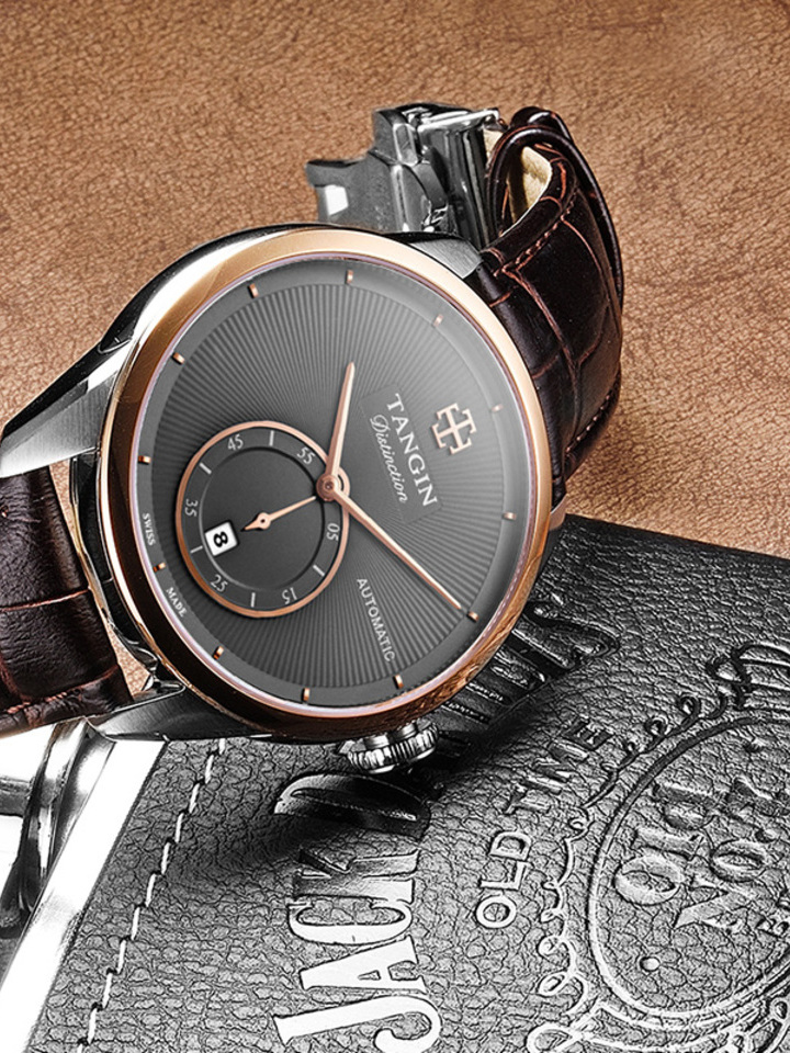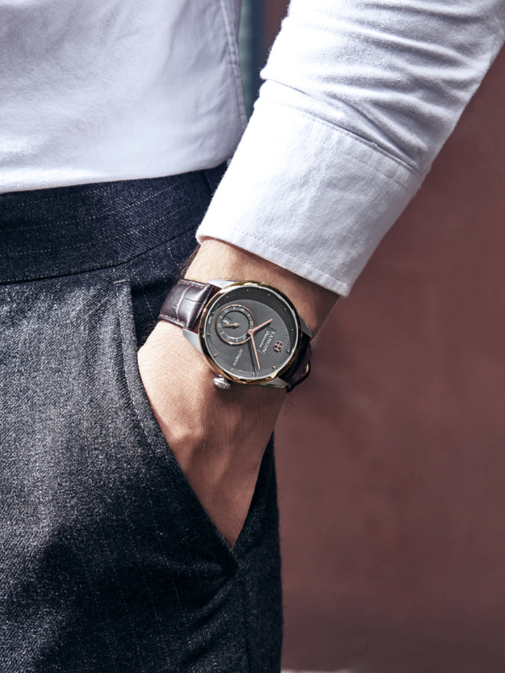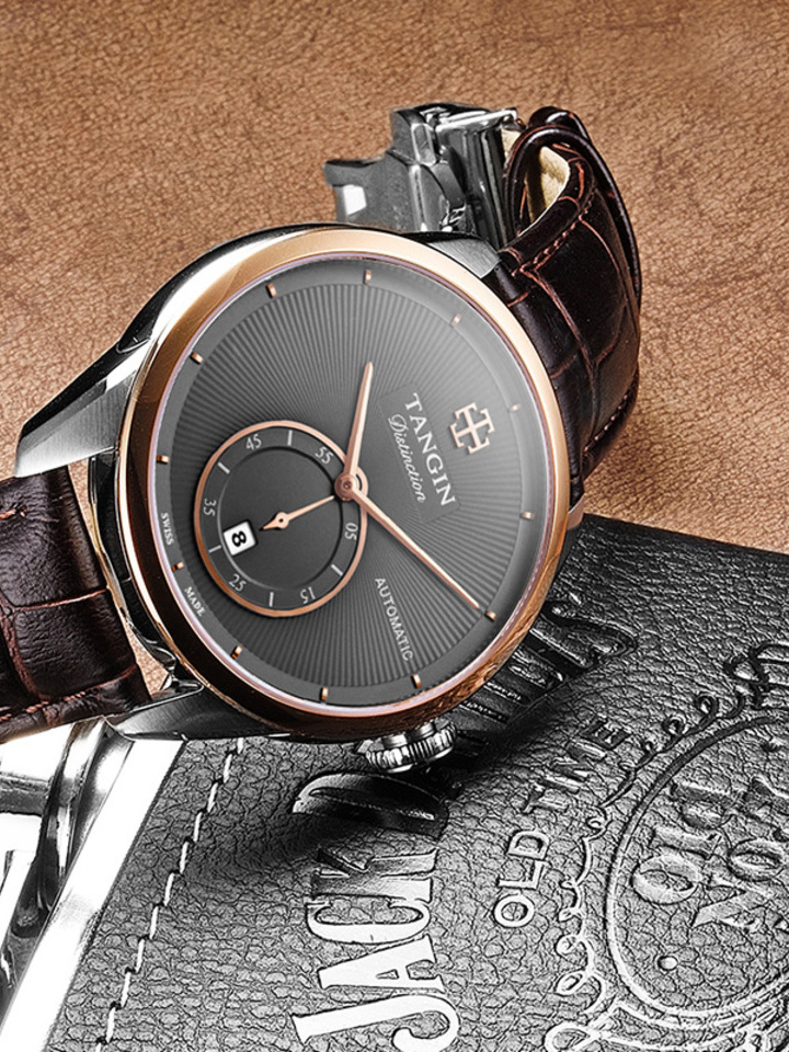 走时精确,据说一天零分差捏,高达五十米生活防水设计,能够完全满足日常生活用水,薄薄的质感轻便又有一种英伦气息~采用J880.2自动上弦机芯,使得走时更加精准稳定。