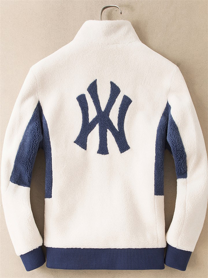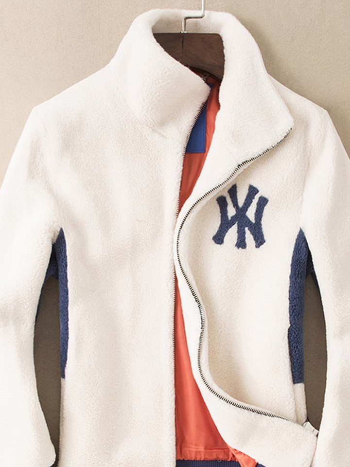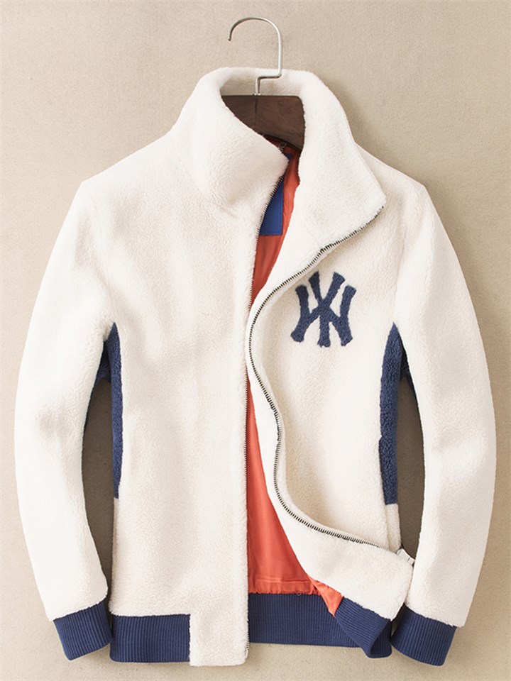这款夹克采用优质的羊毛面料,柔软舒适,保暖效果好,经典的棒球领设计,时尚百搭,胸前的字母刺绣,彰显个性,修身的版型,上身效果很好。