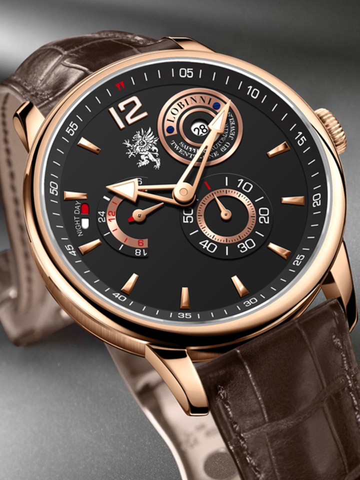 超薄机芯独具隽永、典雅外观;搭载精湛日历、星期、月份以及日月星辰功能。布局清晰、设计新颖;诠释悦目超凡华美造诣。