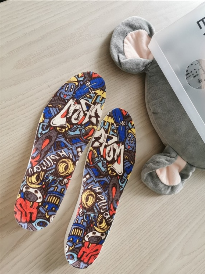 涂鸦设计,个性十足,柔软减震,加厚内增高,舒适透气小孔设计。