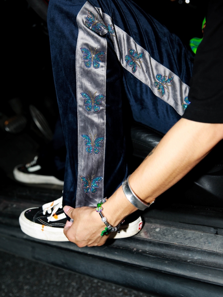 丝绒材质自带的复古气质,为这款裤子染上了一丝独特的复古神秘韵味,然而宽松的版型以及休闲的风格,更添潮流嘻哈气息。
