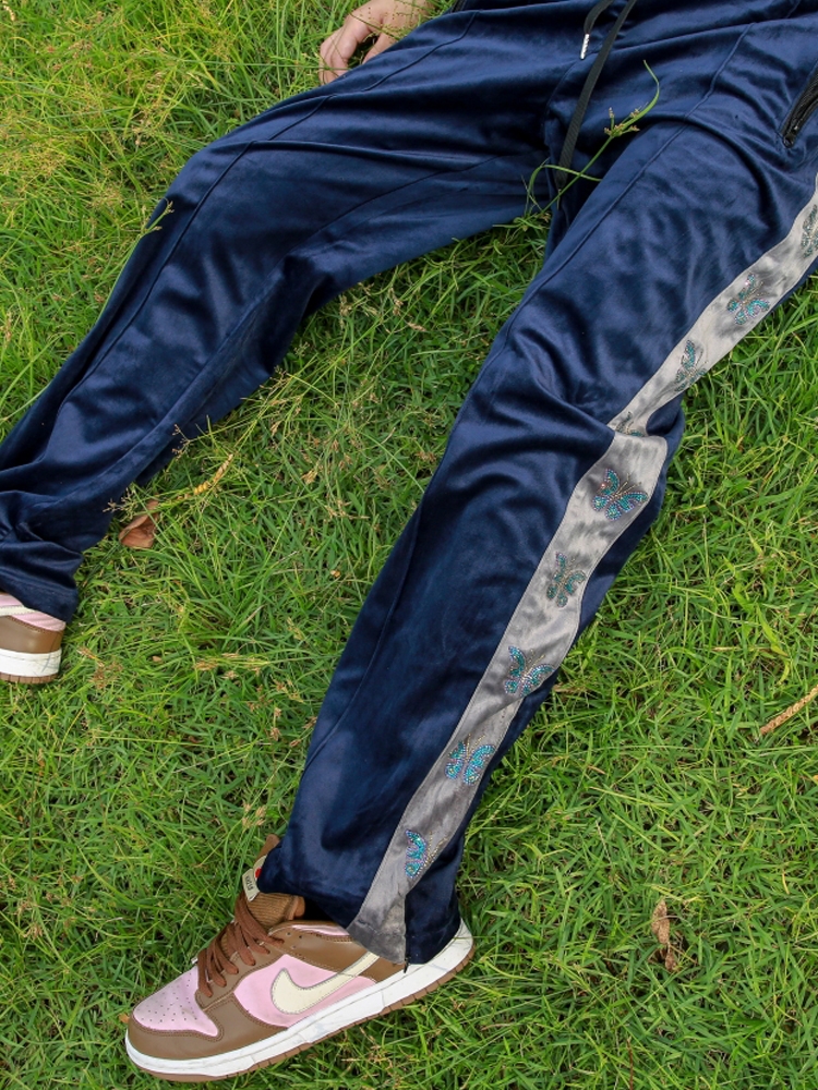 顺滑柔软的丝绒材质,极具舒适感。配以别致的烫钻蝴蝶图案,极具别样精致气息。宽松慵懒版型设计,彰显街头嘻哈范儿。