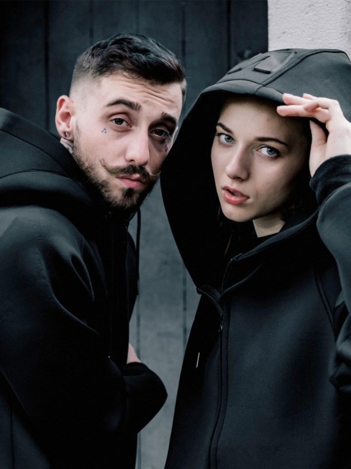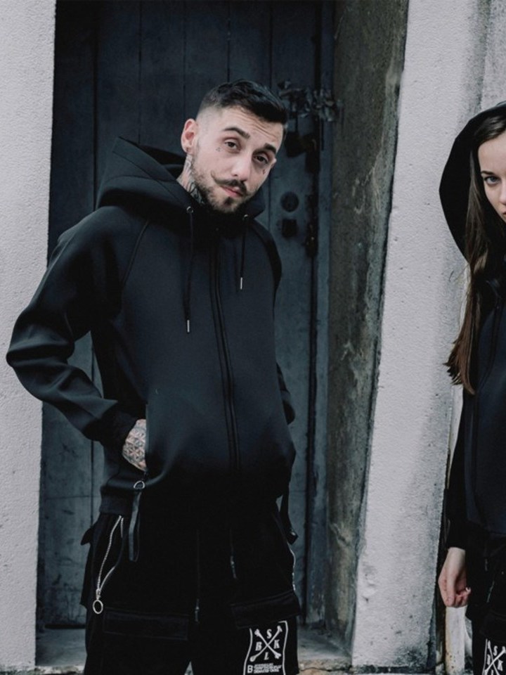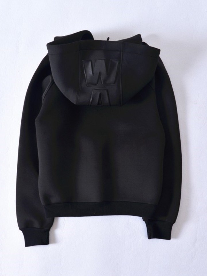 情侣帽衫搭配,和爱人一起感受时尚。通体为黑色,帽子后面有黑色字母装饰,一体式的连帽,显得休闲大方。中间带有可连通的口袋,富有弹性的紧缩袖口设计,可修饰出袖长。