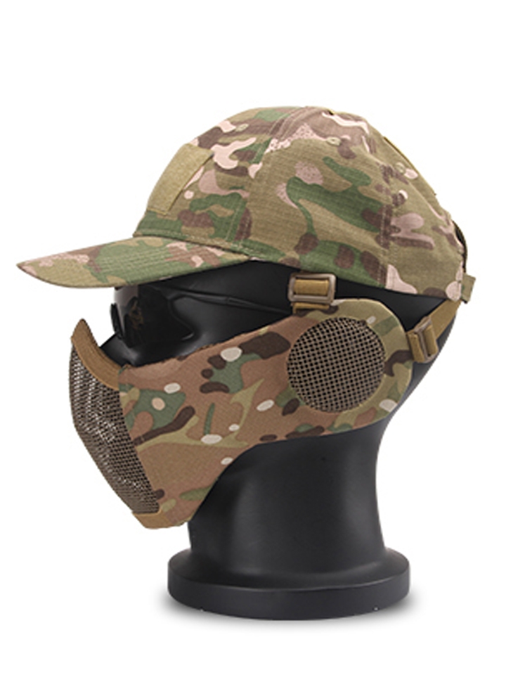 迷彩印花式面具,精致美观,彰显个性。独特设计理念,方方正正,完美诠释出都市精英的优雅气质与拼搏魄力。全新的构筑理念,可轻松营造简约大气的时尚造型。环保的尼龙材质与透气钢丝网结合,能够更好的保护脸部耳部不受伤害。