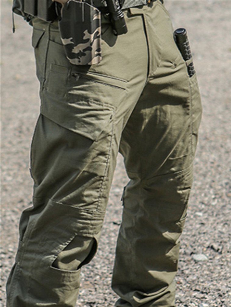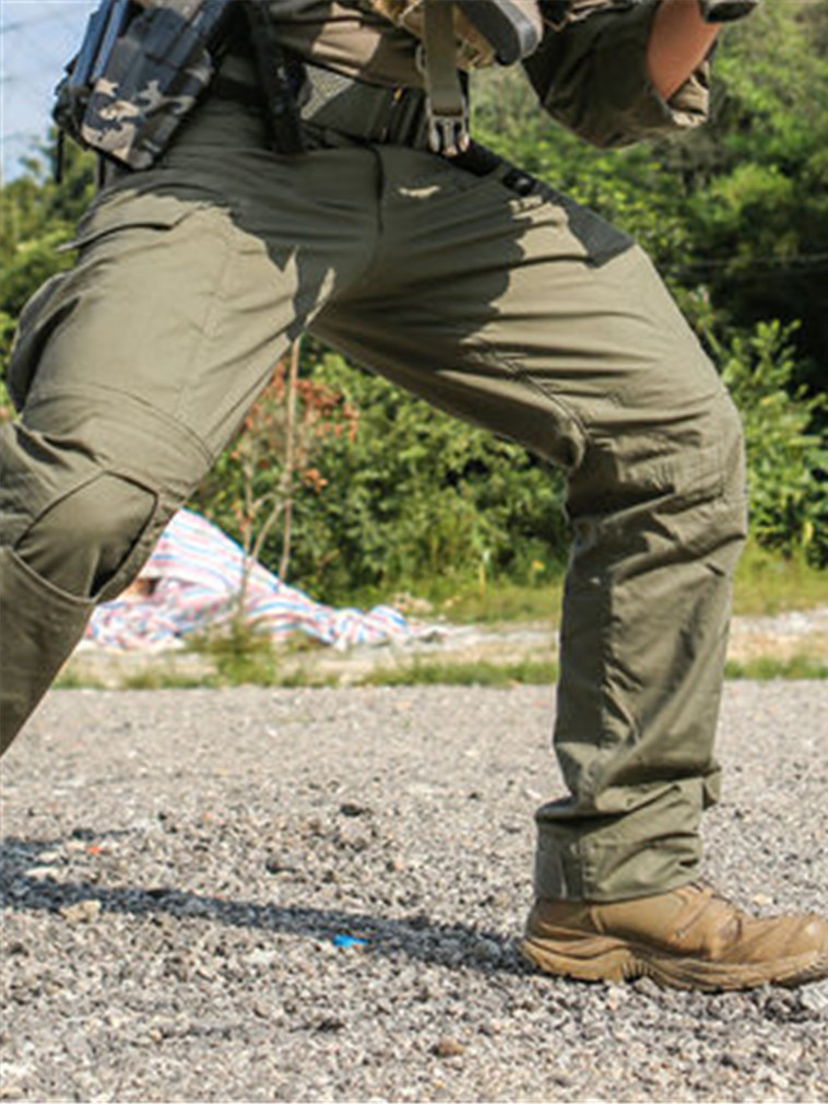 超强防刮格子布面料(具有超强耐磨/防刮)特性!肘部和膝盖部位的护膝都可拆卸设计,裤脚可收缩设计,整套衣服多兜设计方便了装载户外装备!