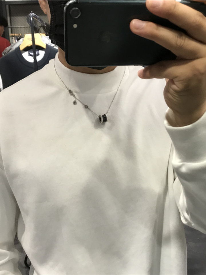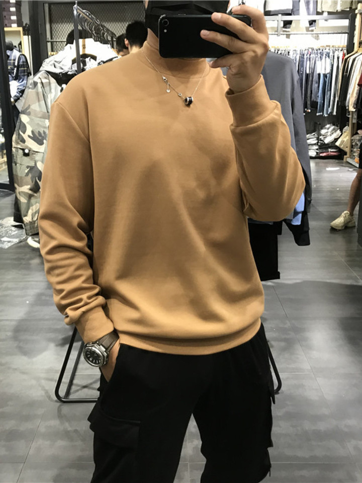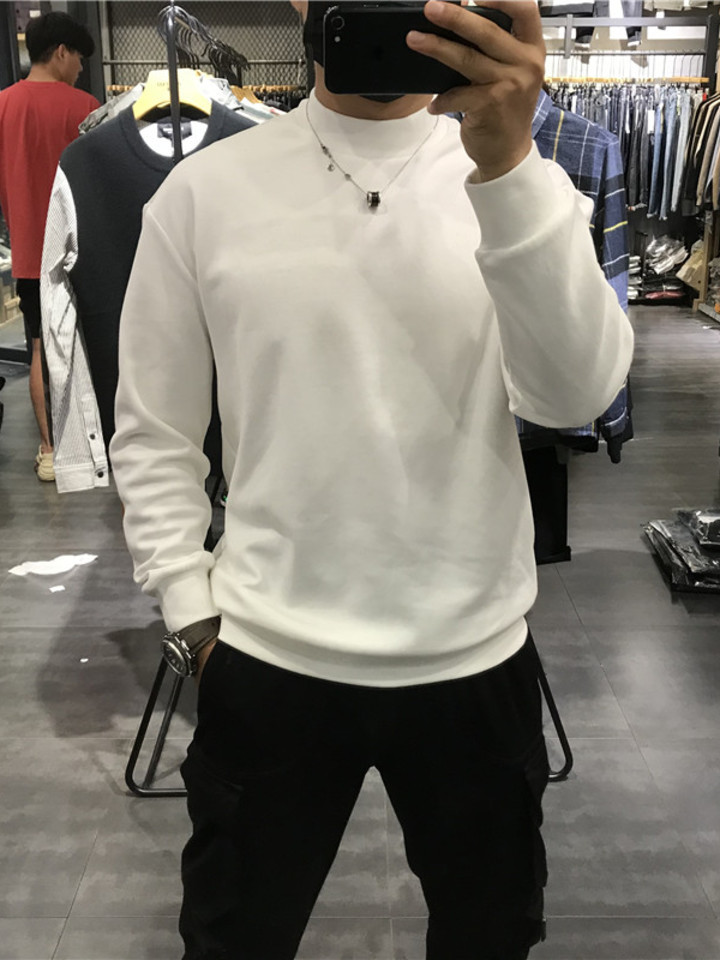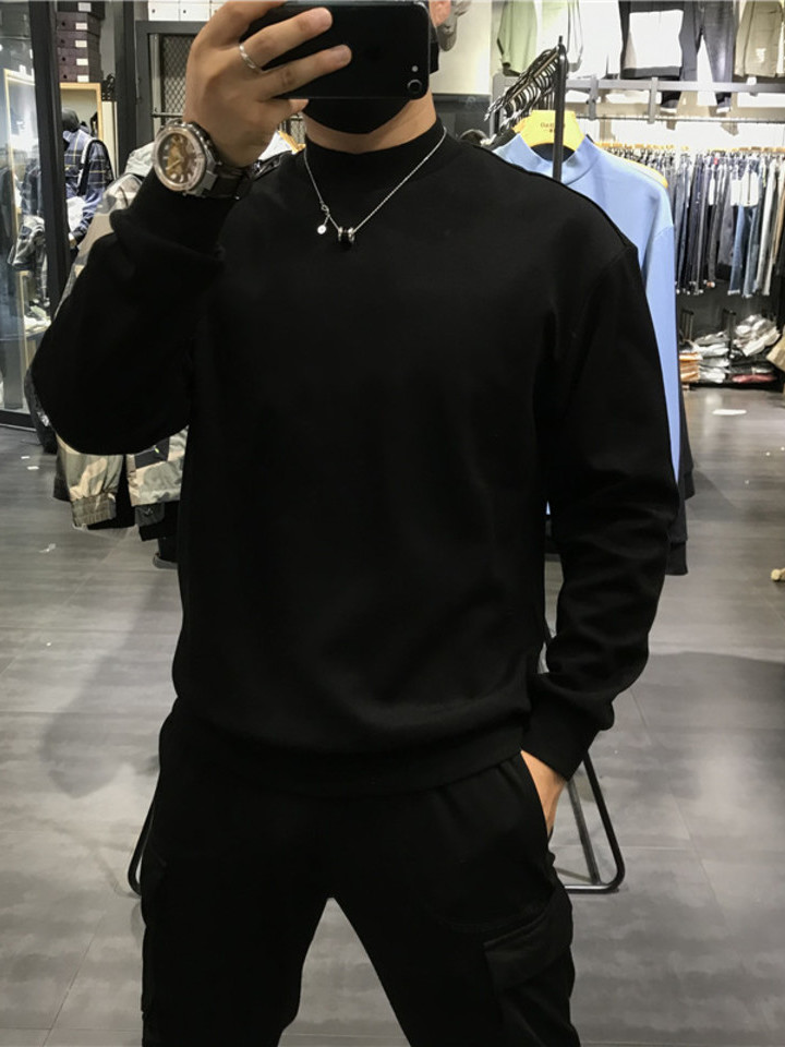 贴合脖颈曲线,更显精神抖擞。下装配以休闲裤、系带运动鞋,利落allblack造型,帅气有型。