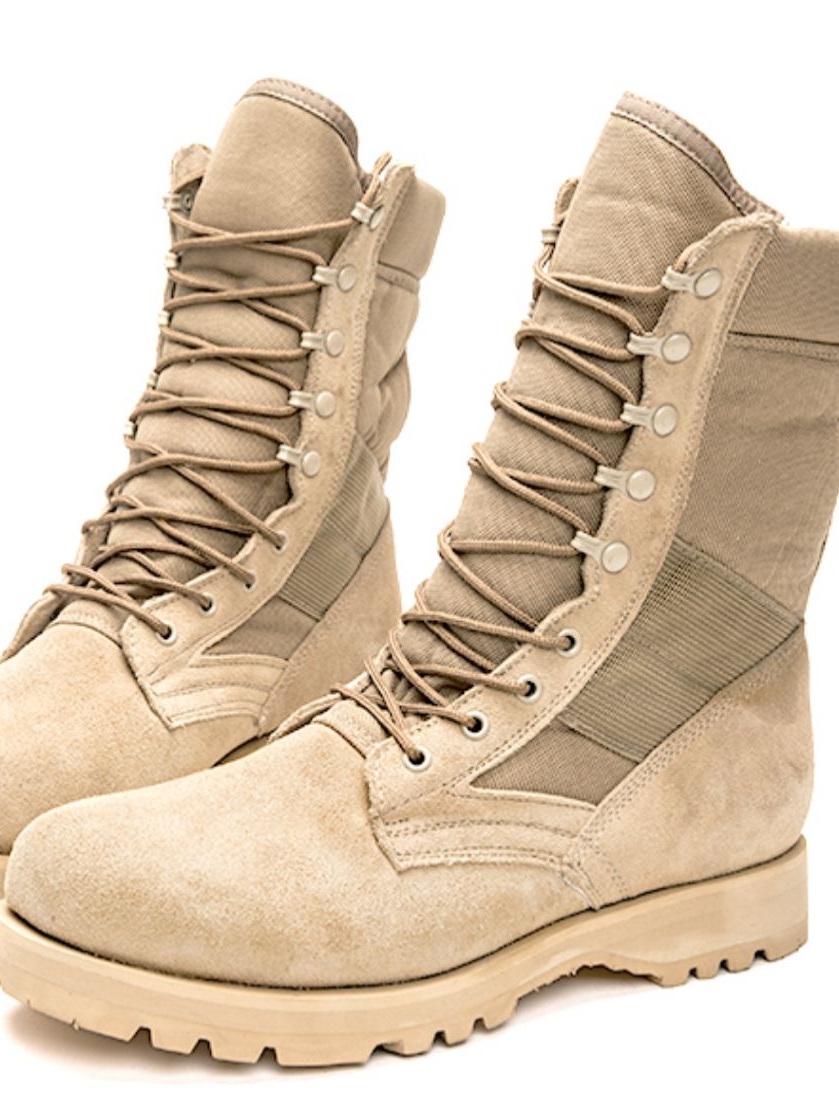 鞋面采用了尼龙+皮革材质,鞋头与鞋跟出加入特别的耐磨处理,适合户外作训环境,一体式鞋舌设计,加入双列透气网布,进一步提升透气效果。