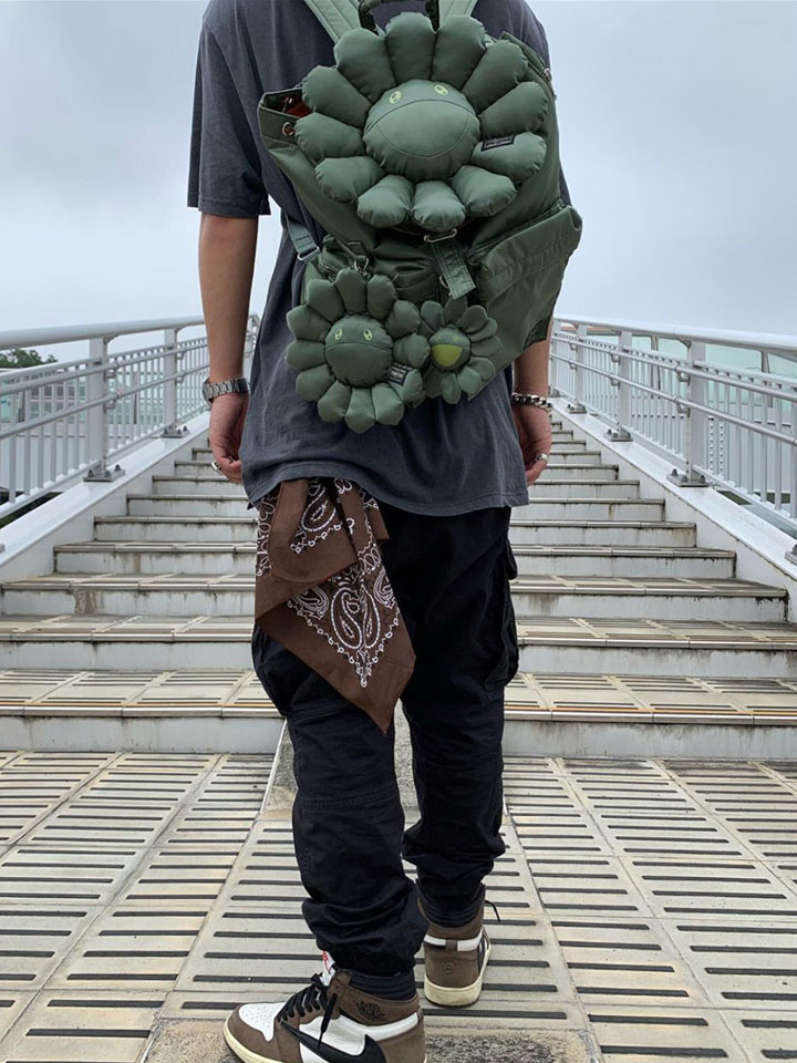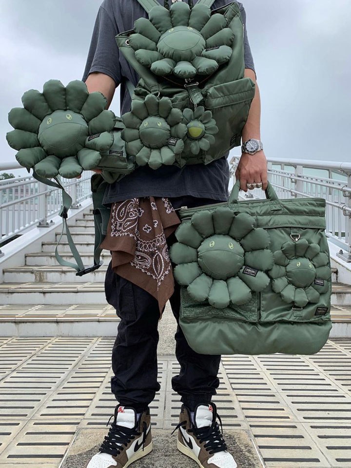 说到出行使用率最高的包包款式,非双肩背包莫属。这款Porter村上隆限量版太阳花尼龙双肩包具有非常时尚的外观设计,军绿色的配色打造出复古时尚风格。经典的太阳花图案印花和外置立体太阳花造型配饰让整体充满潮酷的街头范儿。