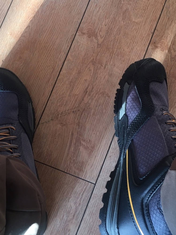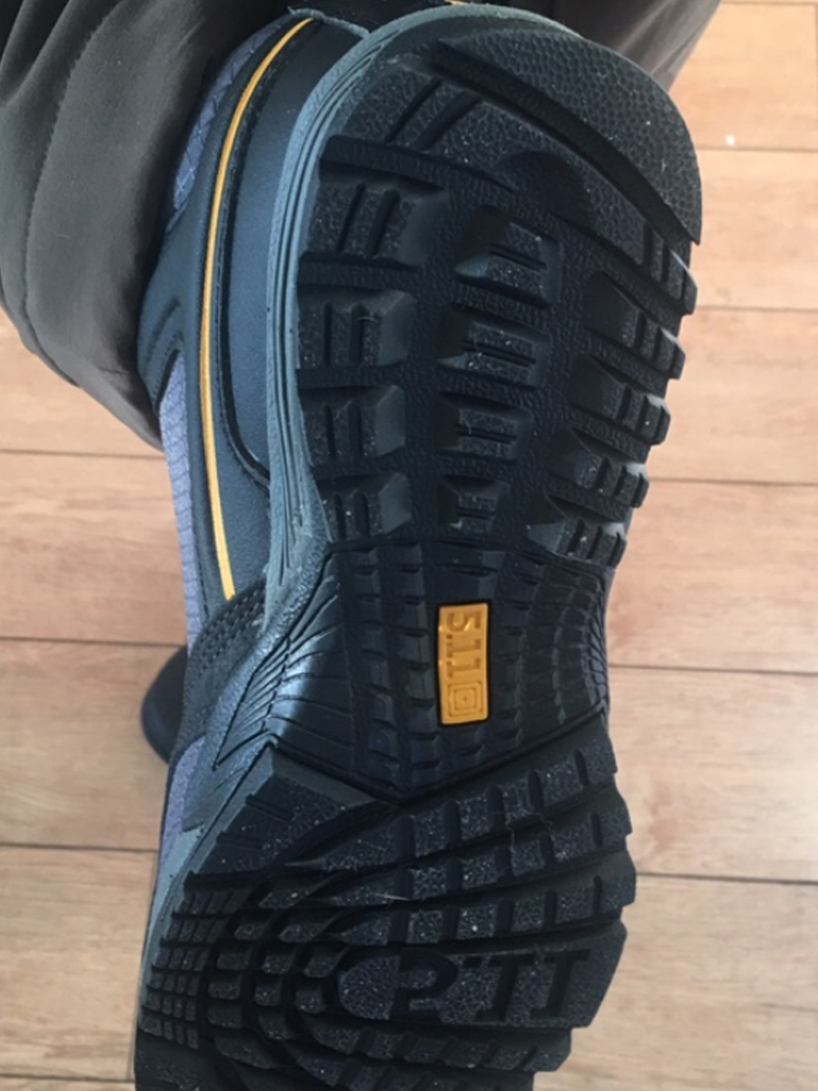 鞋底前端采用V字花纹,上坡离地时更加牢固的抓紧地面和岩面,前掌内侧花纹密集,便于发力,起到制动和有效推动行走,外侧花纹宽大导水效果好,不规则花纹在复杂地形可起到多向防滑效果,中部拱形花纹在攀登梯子、抓绳上时能够增大摩擦力。