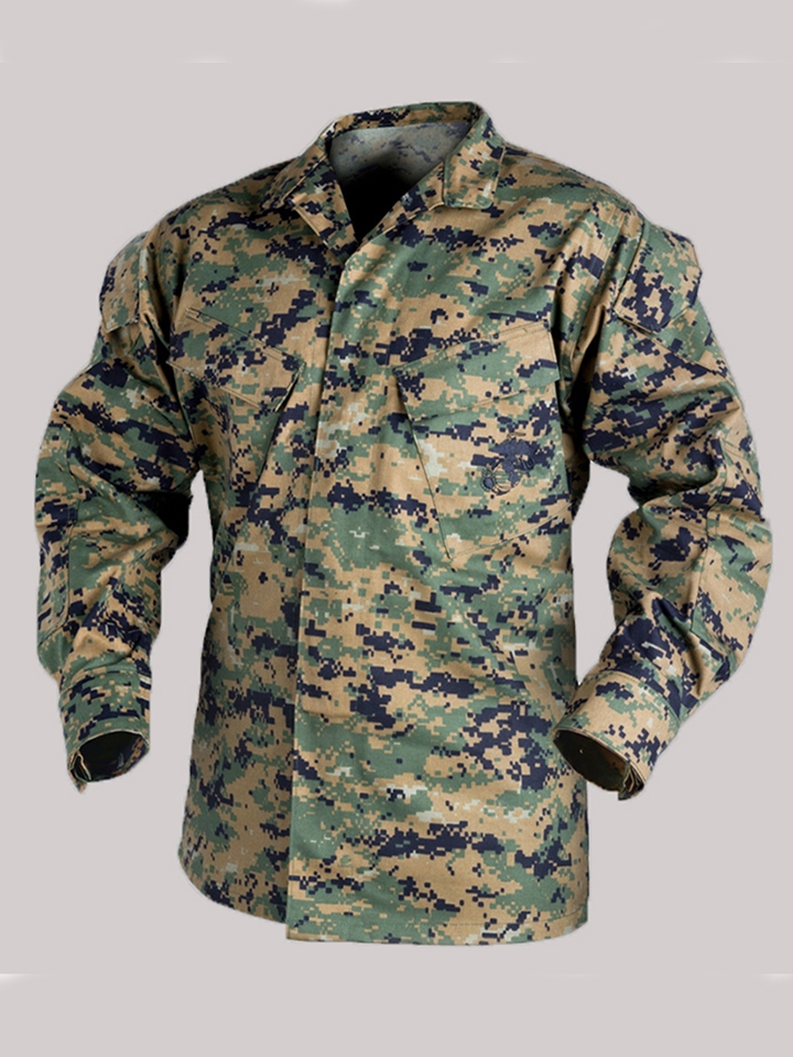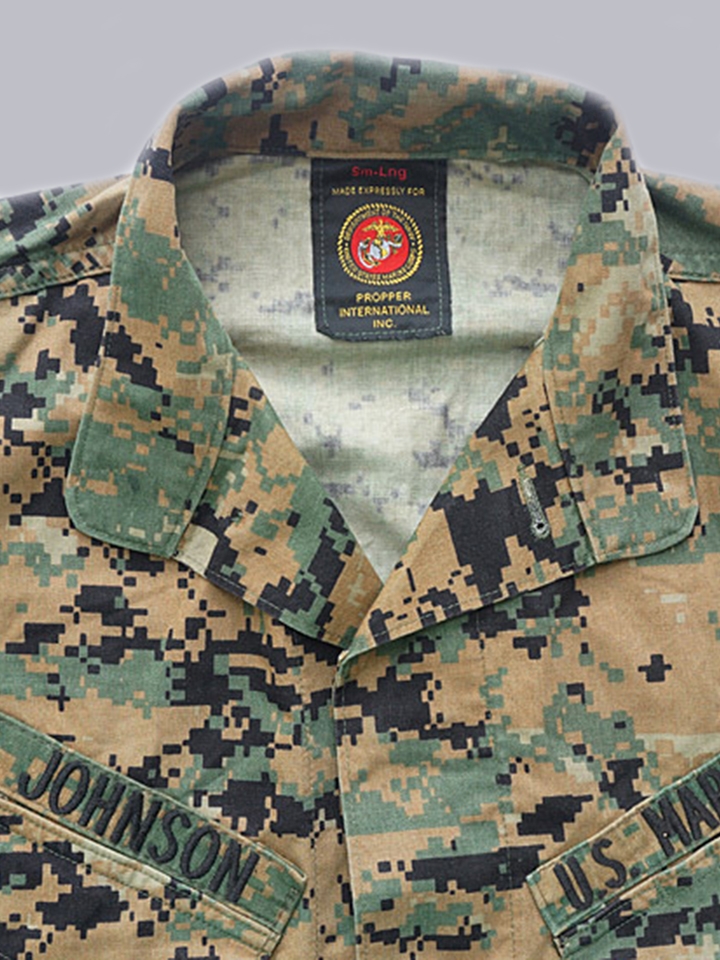 这款迷彩服吸收了帅气的美国训练服的经典元素,并搭配翻领和刺绣设计,增添不少潮流气息。