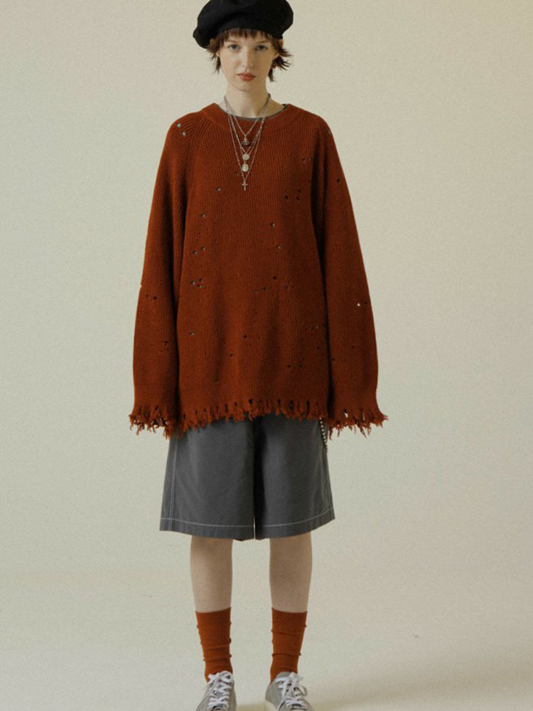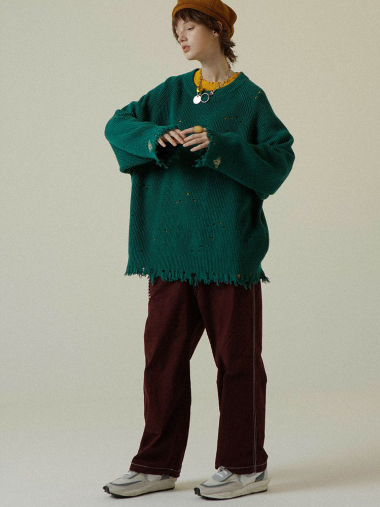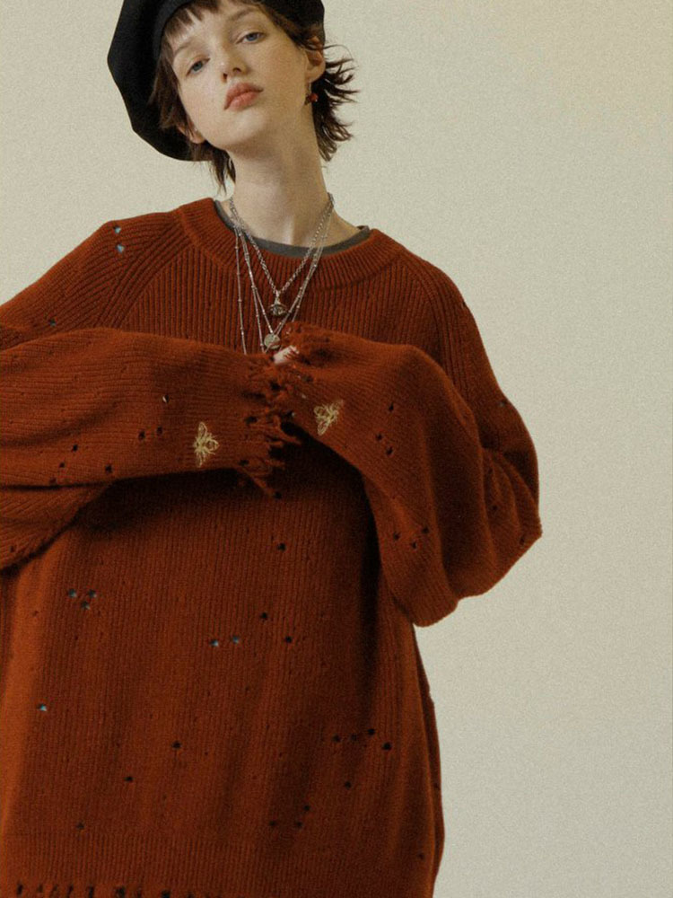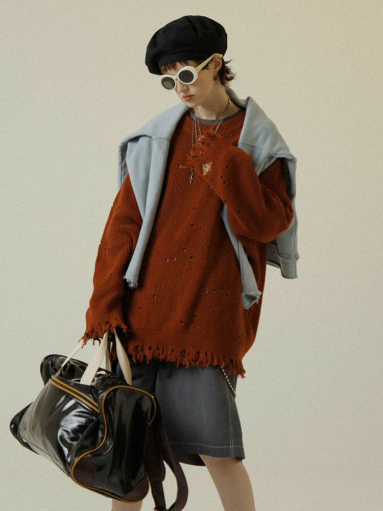 个性的破洞元素成为今年秋冬季节IN的潮流之一,配以优雅浅棕色调更显气质温柔,宽松休闲的衣幅版型轻松遮盖身材上的不足,搭配条牛仔裤或半身裙,尽显慵懒韩范儿。