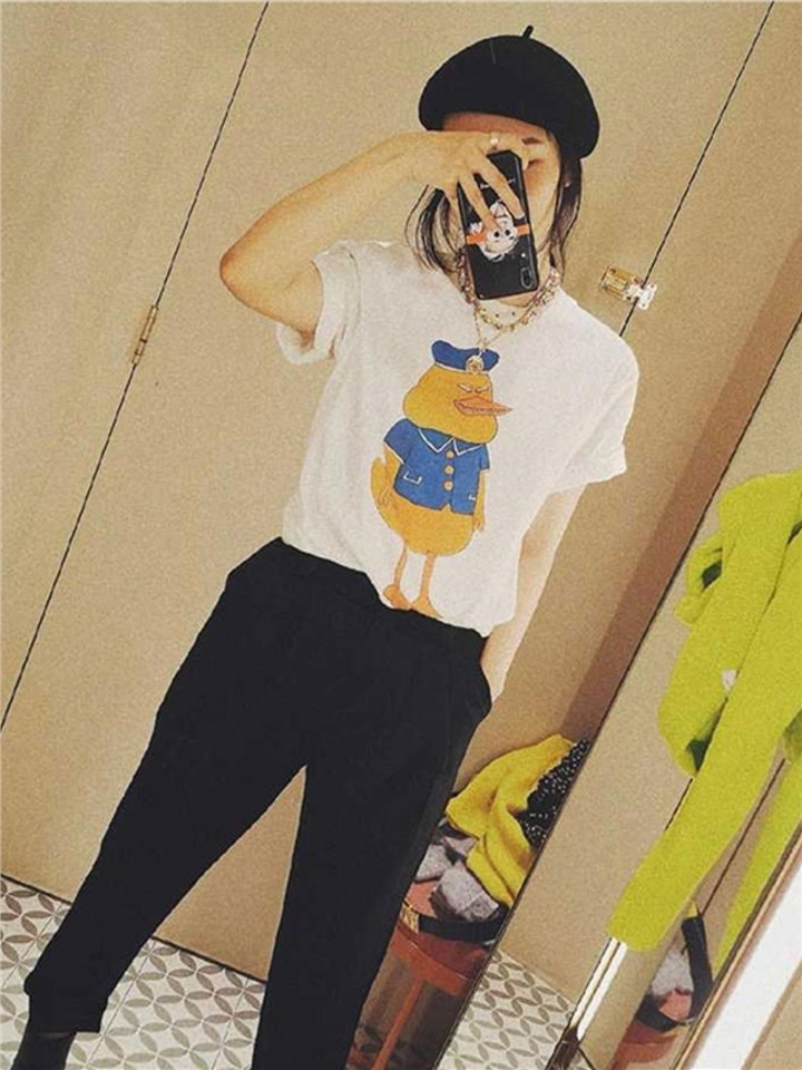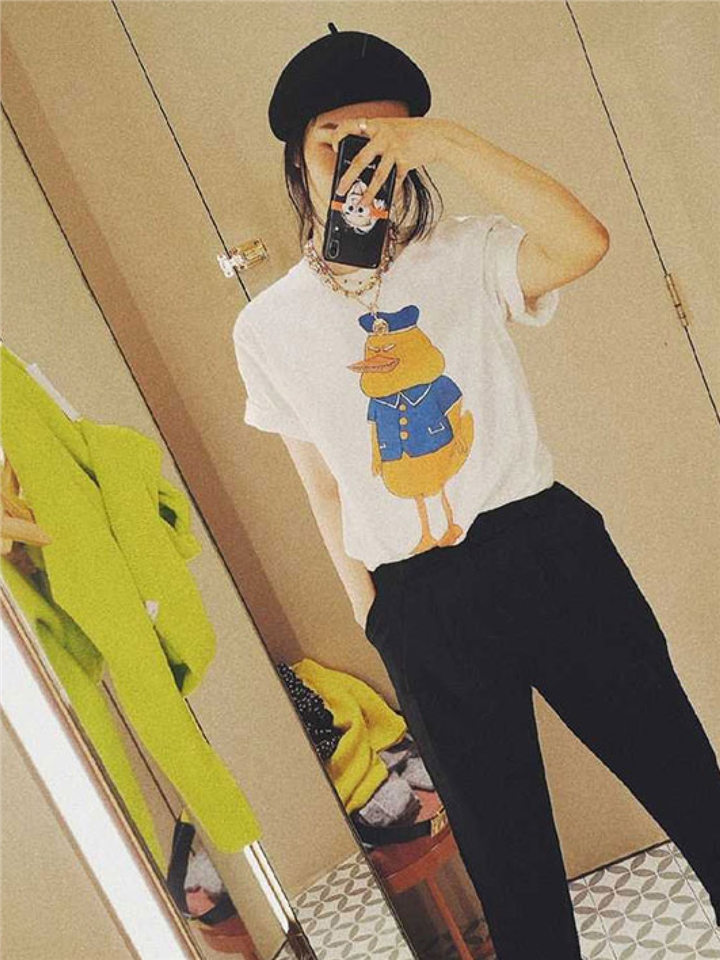 经典的圆领设计,修饰颈部线条,尽显纤细的脖颈线条,百搭不挑人尽显清爽小性感