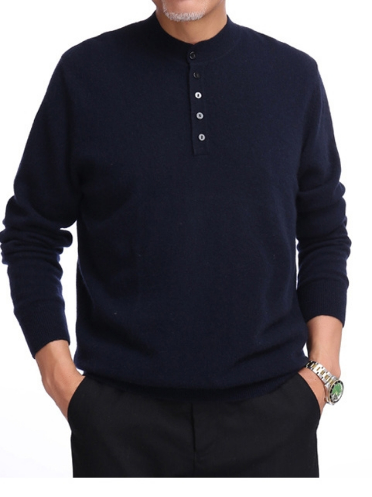 这款羊绒衫采用优质的面料,手感柔软舒适,亲肤透气,修身的版型,穿着舒适有型,简约的纯色设计,时尚百搭,搭配牛仔裤,尽显男士的帅气与魅力。