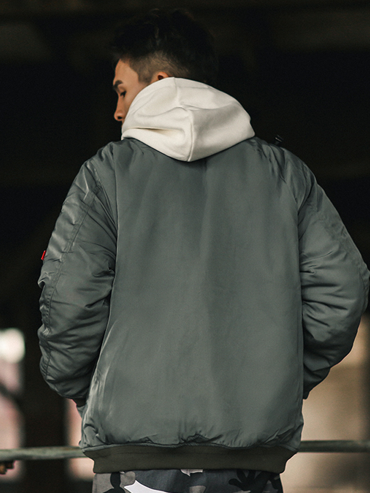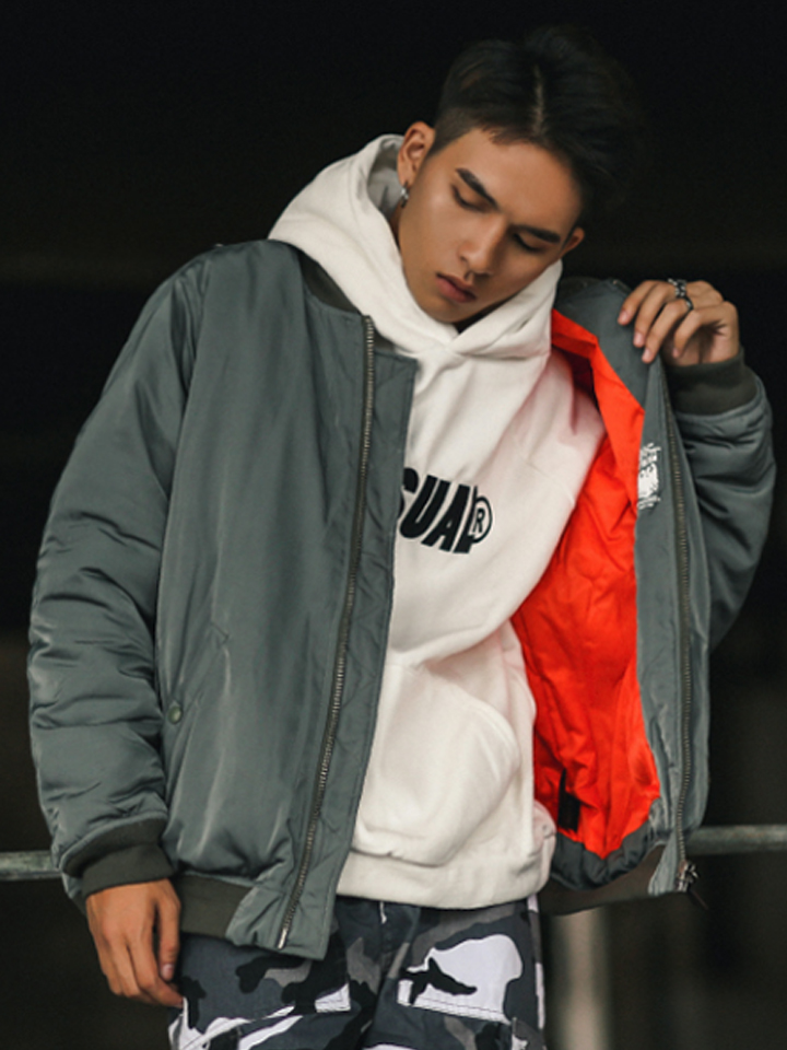 宽松的廓形版型,不管胖瘦都能全市驾驭,穿起来还非常显瘦,领口、袖口和下摆拼接了螺纹设计,增强质感与舒适度的同时又能锁住温暖,无论内搭什么样的衣服都不会感觉拘束而难受,厚实的质感,棒球服的款式设计很大众化,简单不挑人穿。