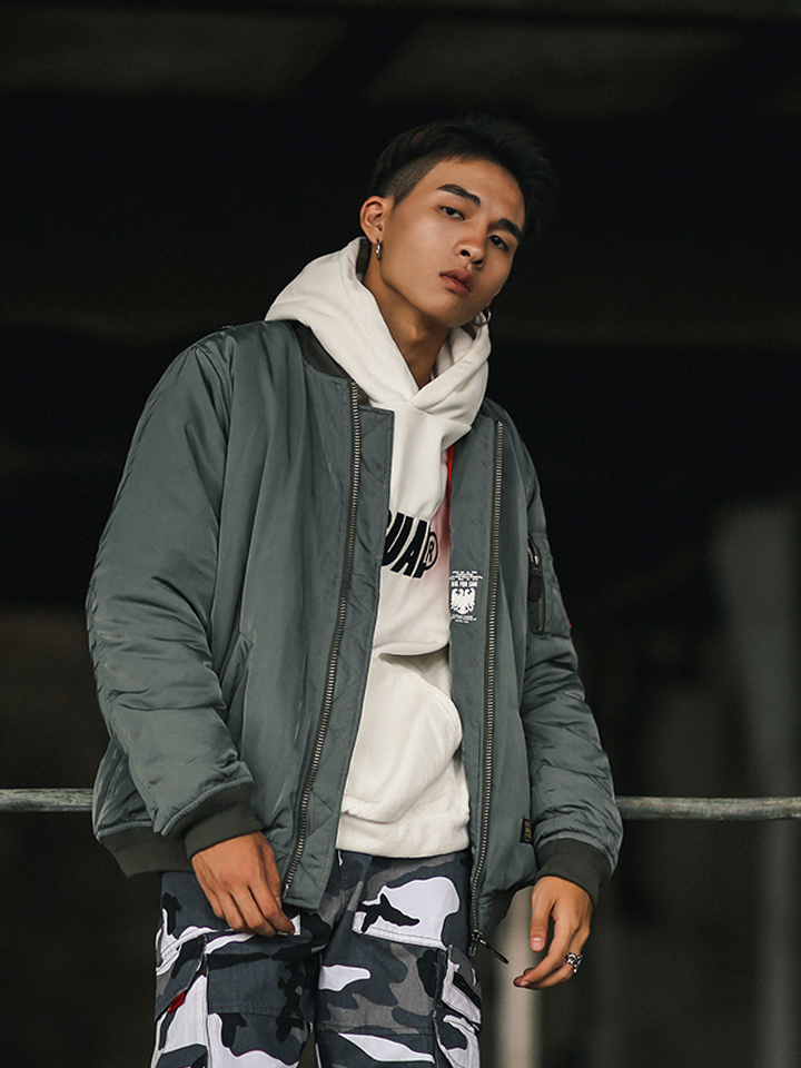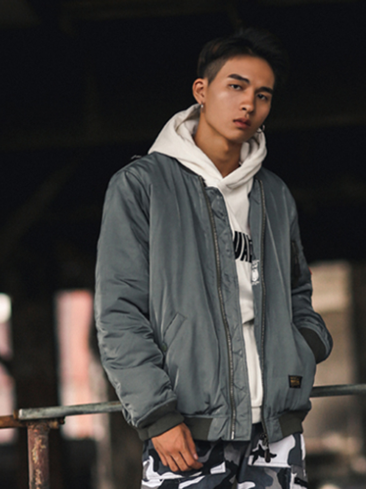 在面料上采用了棉质混织面料,使得衣服既具有棉质面料的舒适柔软效果,同时又具有聚酯纤维面料的挺括性以及保型效果,穿着起来舒适有型。用了立体袖袋的设计,搭配质感金属拉链点缀,使得口袋看起来大气有型,又不失细节品质感,给与衣服整体丰富的层次体验。