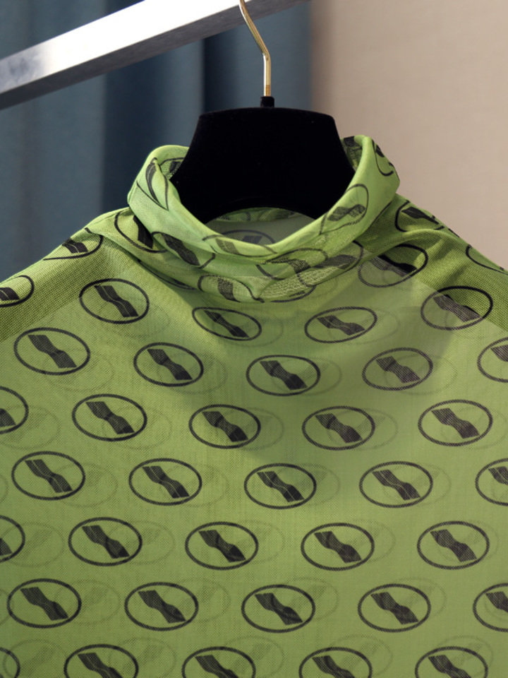 网纱的拼接带来一些若隐若现的感觉,显得精致又性感,也很好的形成了一个撞色的感觉,色彩表现感不错,面料柔软顺滑适合贴身穿着,高领小堆领有些复古的感觉。