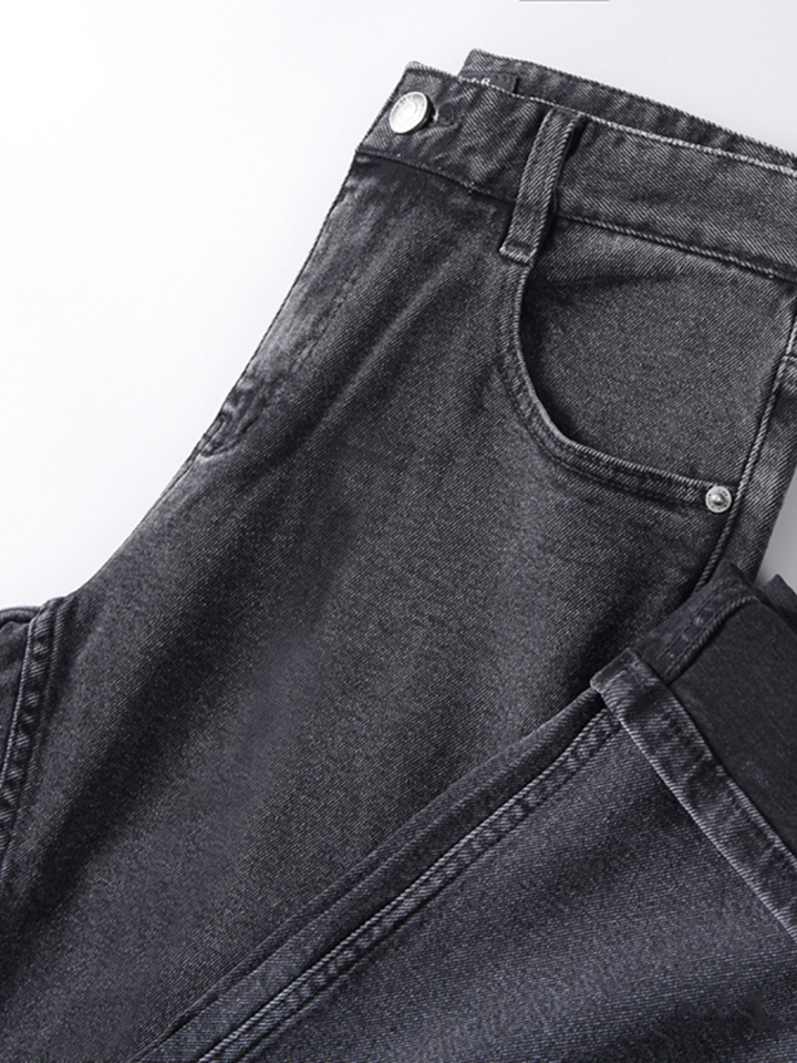 高腰设计,拉长身材比例。高腰牛仔裤,显瘦显腿长。直筒裤型,修饰腿部线条。