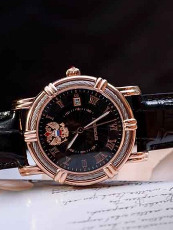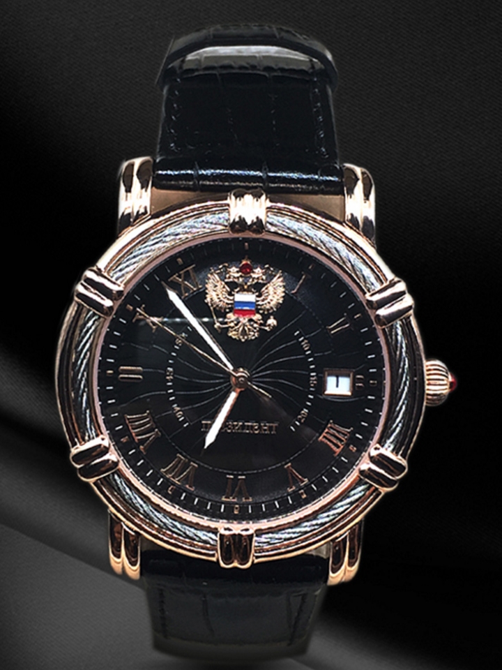 精钢表壳搭配黑色皮质表带,佩戴起来舒适又不失质感。