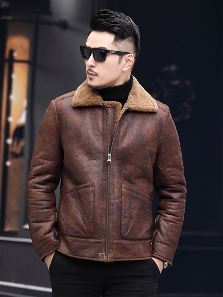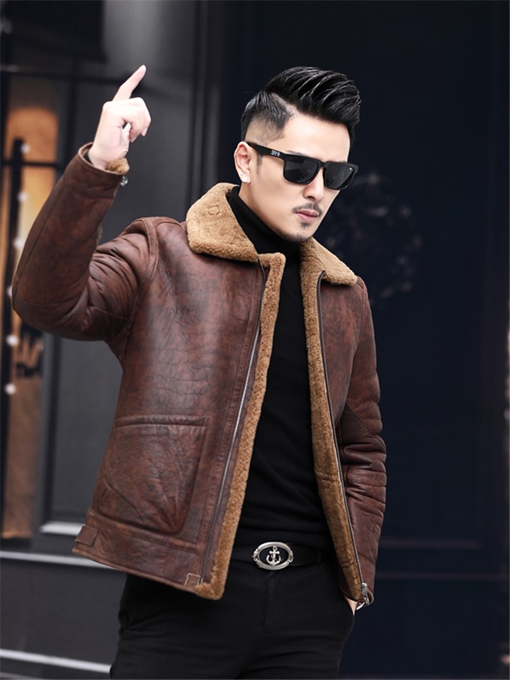 皮衣版型,穿着帅气有型,羊皮毛一体,保暖又舒适,短款外套,拉长身材比例,羊毛皮质,手感柔软舒适。