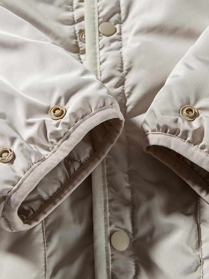 一款颇为实用的棉服哦,两面穿的设计,保暖的同时让你的造型随心改变,更显随意;V领的设计,带来更为时尚的气息,增添亮点,引人注意。