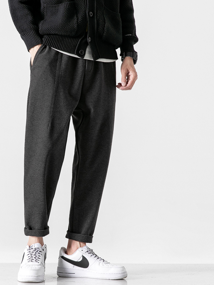 这是一条颇具英伦气息的休闲裤,品质感很高,上身效果气质佳。聚酯纤维的面料更具有一定挺括性。很特别的一款休闲裤,加厚的面料,舒适又保暖。松紧腰的设计,方便又好穿,搭配卫衣,上身很休闲呢。