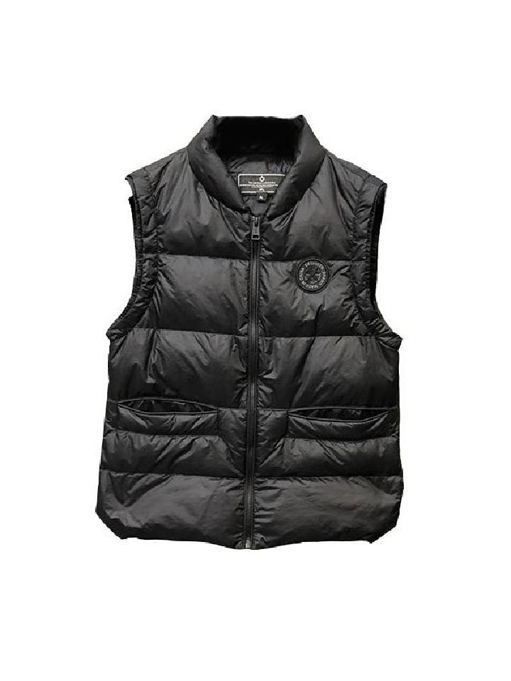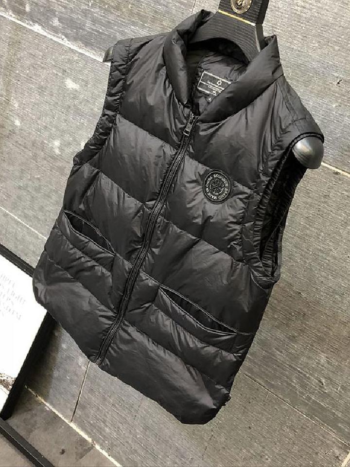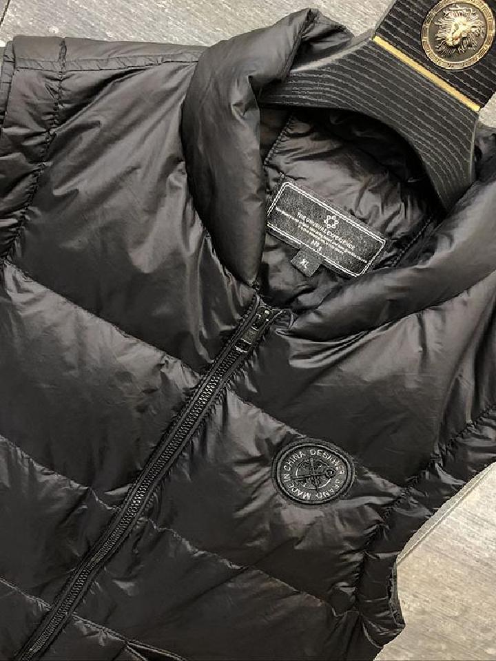 此款黑色羽绒服马甲,采用蓬松保暖的白鸭绒填充内里,给予温暖舒适的穿着体验。并采用严密的绗缝线,塑造出立体挺括的衣型。
