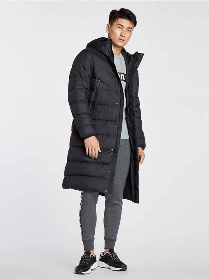 中长款版型时尚大气,带来全方位的温暖体验,全身暗夜系的配色给人以成熟稳重的视觉感受。