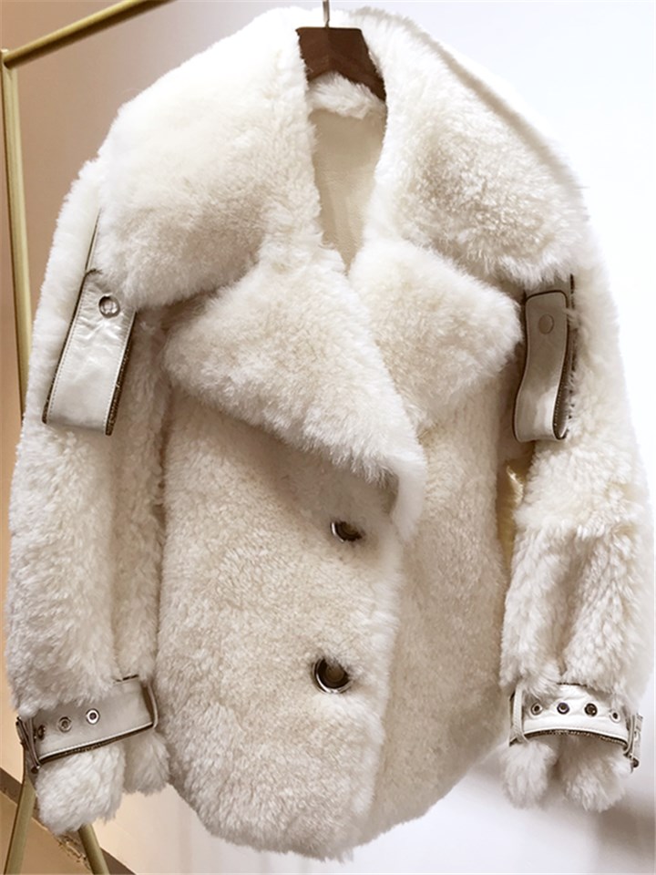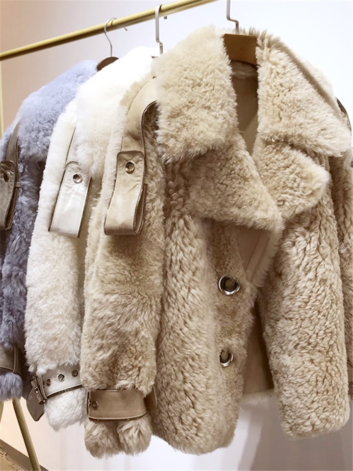 皮毛一体设计,保暖舒适,羊毛皮毛衣,舒适又保暖,羊毛皮衣,穿着舒适保暖,休闲版型,让你轻松驾驭,短款外套,拉长身材比例,真皮材质,手感柔软细腻,一体成型,穿着更加舒适。