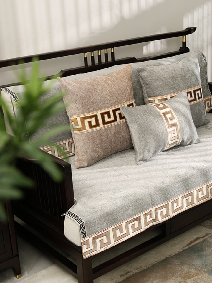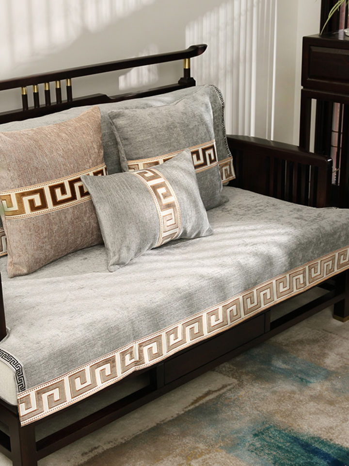 紧密细密的针线将沙发垫压制牢固,线条形状美观,垫面饱满紧致。优雅的花边缝制在沙发垫的四周,使得家居气氛浪漫而温馨。